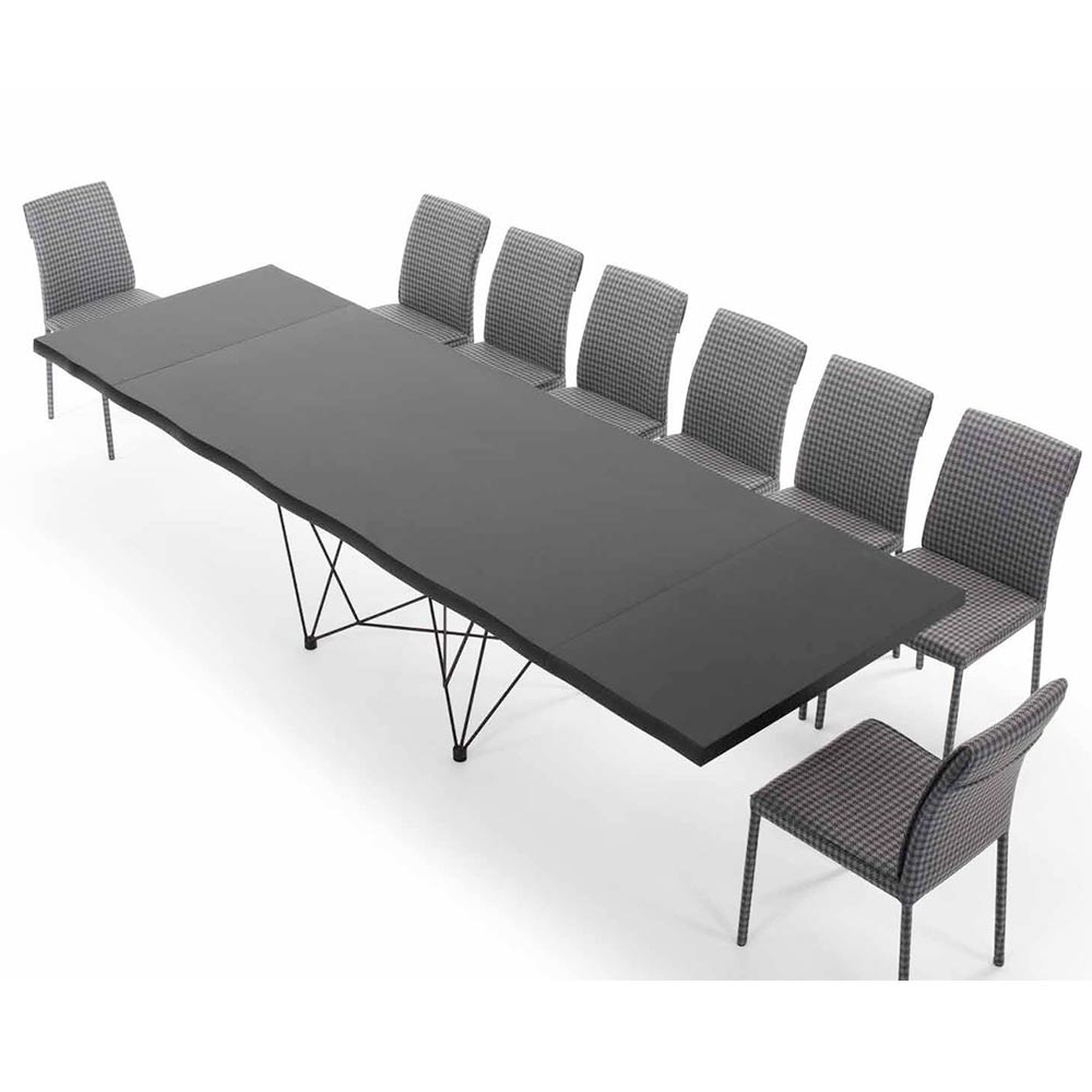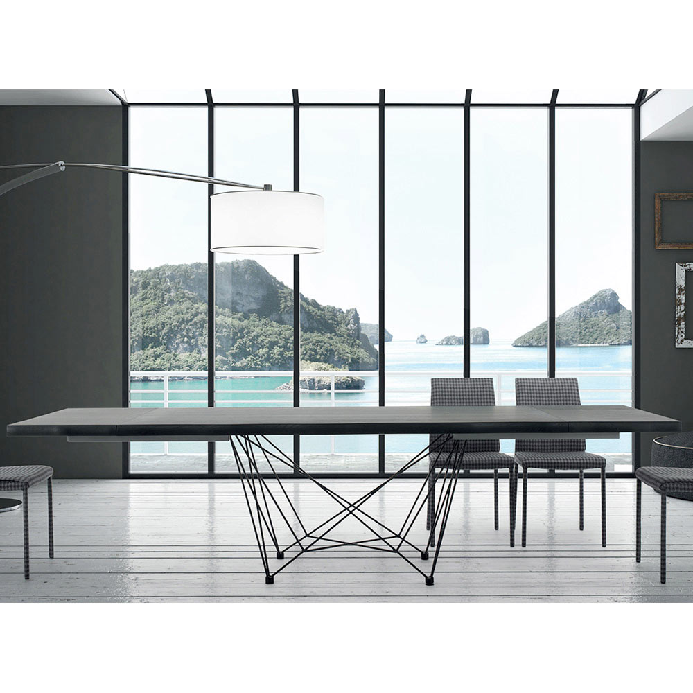 Modernt utdragbart bord upp till 300 cm med fanerad träskiva och svart stålfot tillverkat i Italien.