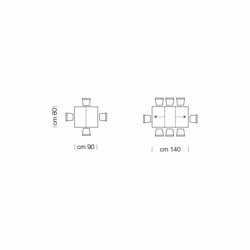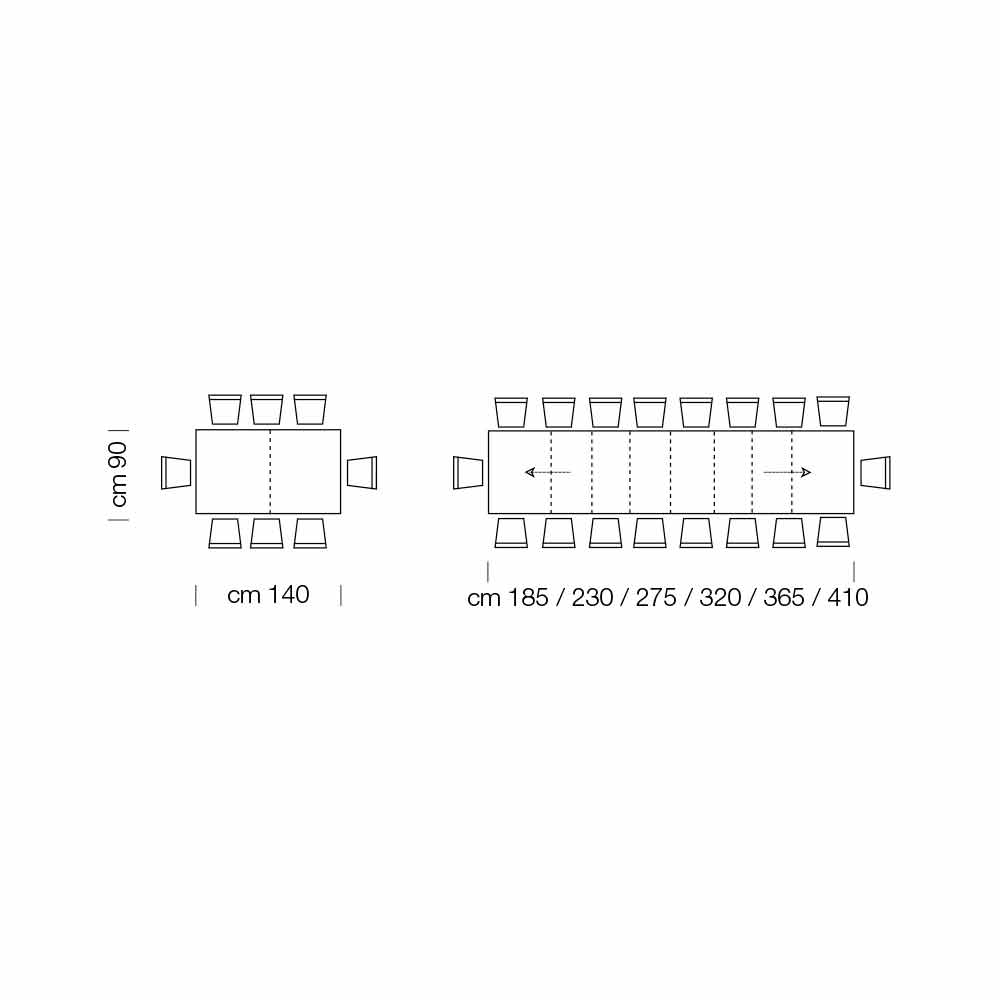 - L 140 (410) x D 90 x H 77 cm 18-sits utdragbar med sex 45 cm förlängningar, tre invändiga och tre levereras i en återanvändbar kartong;