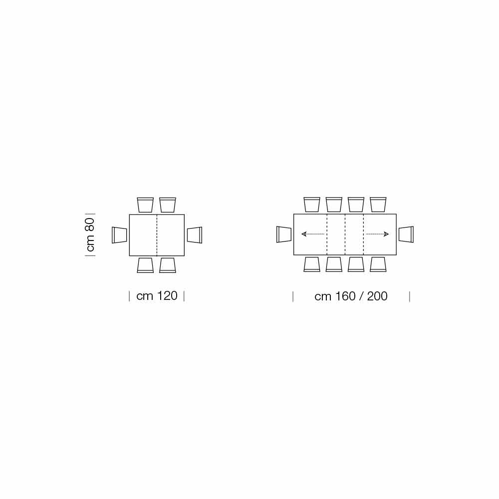 - L 200 (470) x D 120 x H 77 cm 22-sits utdragbar med sex 45 cm förlängningar, tre invändiga och tre levereras i en återanvändbar kartong.