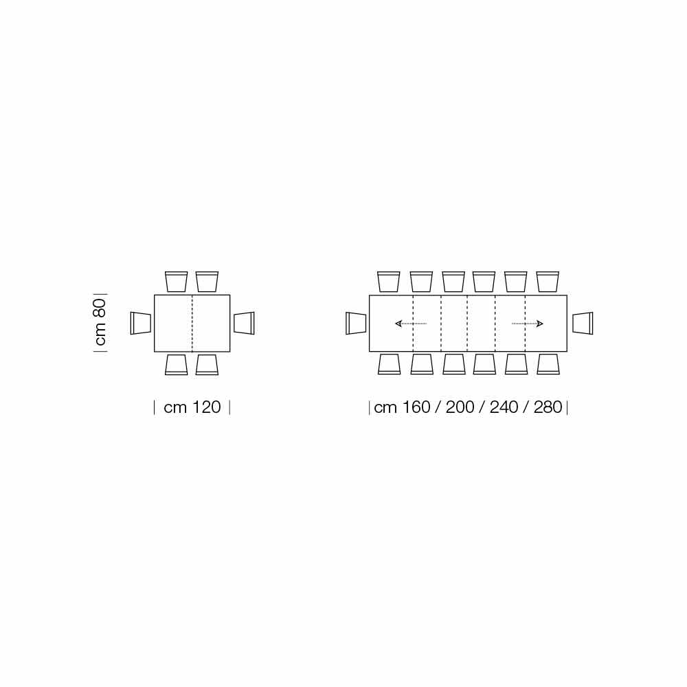 - L 120 (280) x D 80 x H 77 cm 14-sits utdragbar med fyra 40 cm invändiga förlängningar;