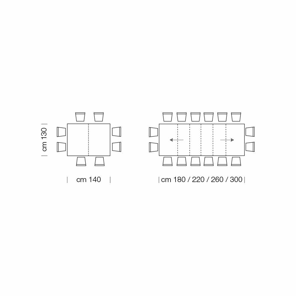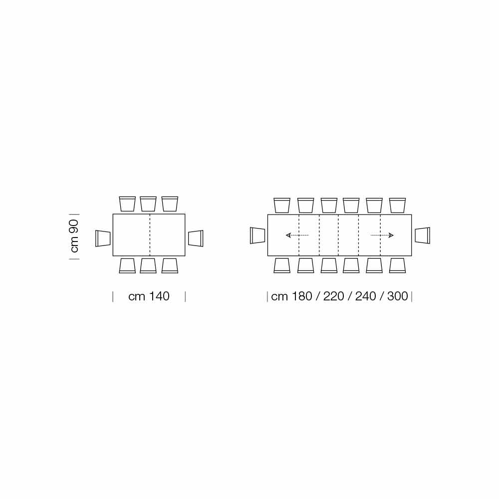 - L 140 (300) x D 90 x H 77 cm 14-sits utdragbar med fyra 40 cm invändiga förlängningar;
