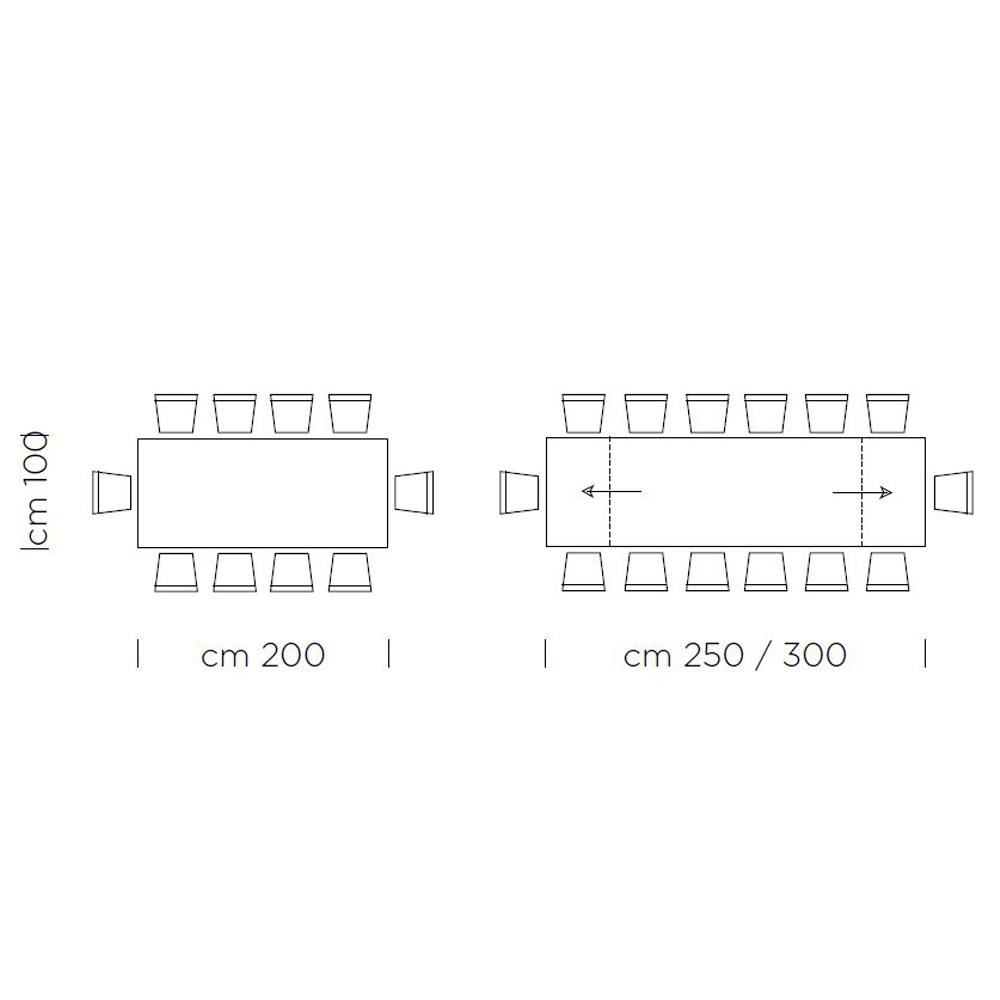 - L 200/300 x D 100 x H 75,5 cm 14 sittplatser (2 förlängningar á 50 cm).