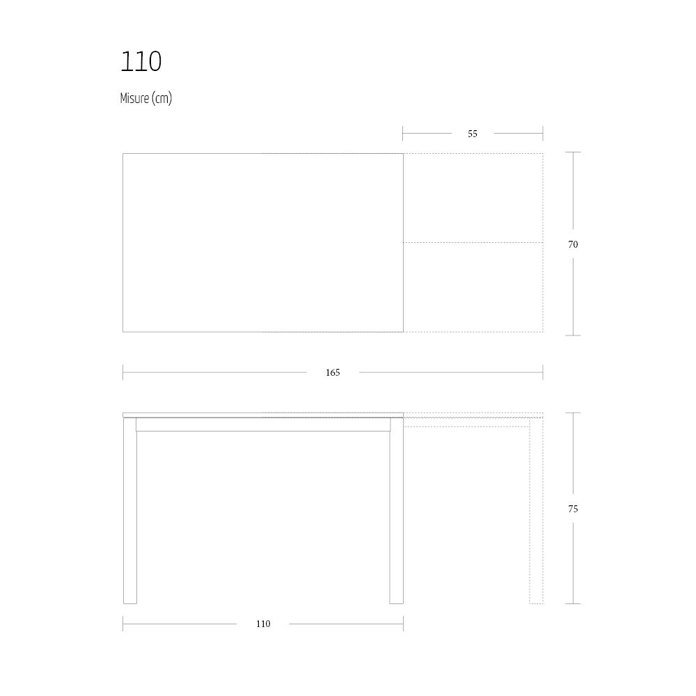 Tillgängliga storlekar:- L 110(165) XP 70 H 75 cm - sträcker sig från 55 cm;