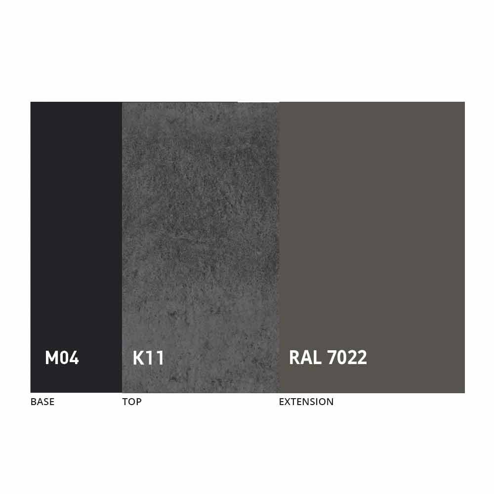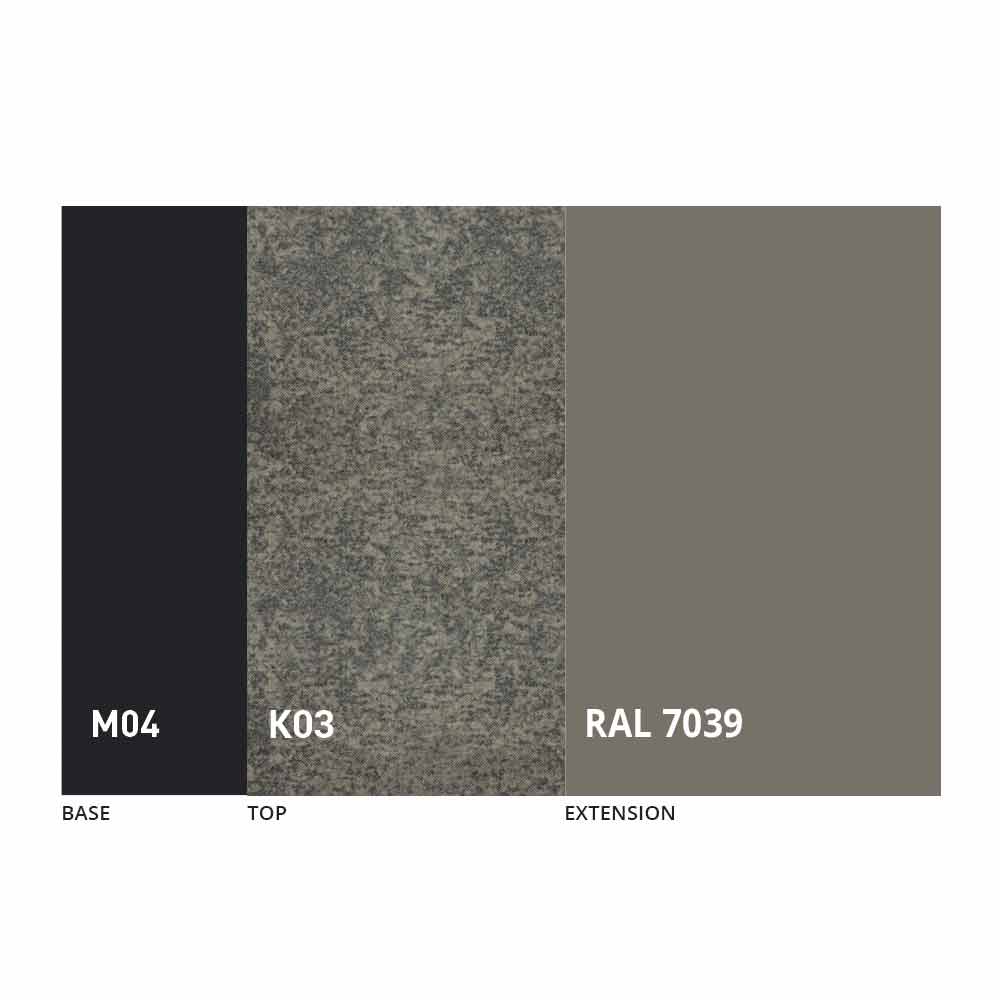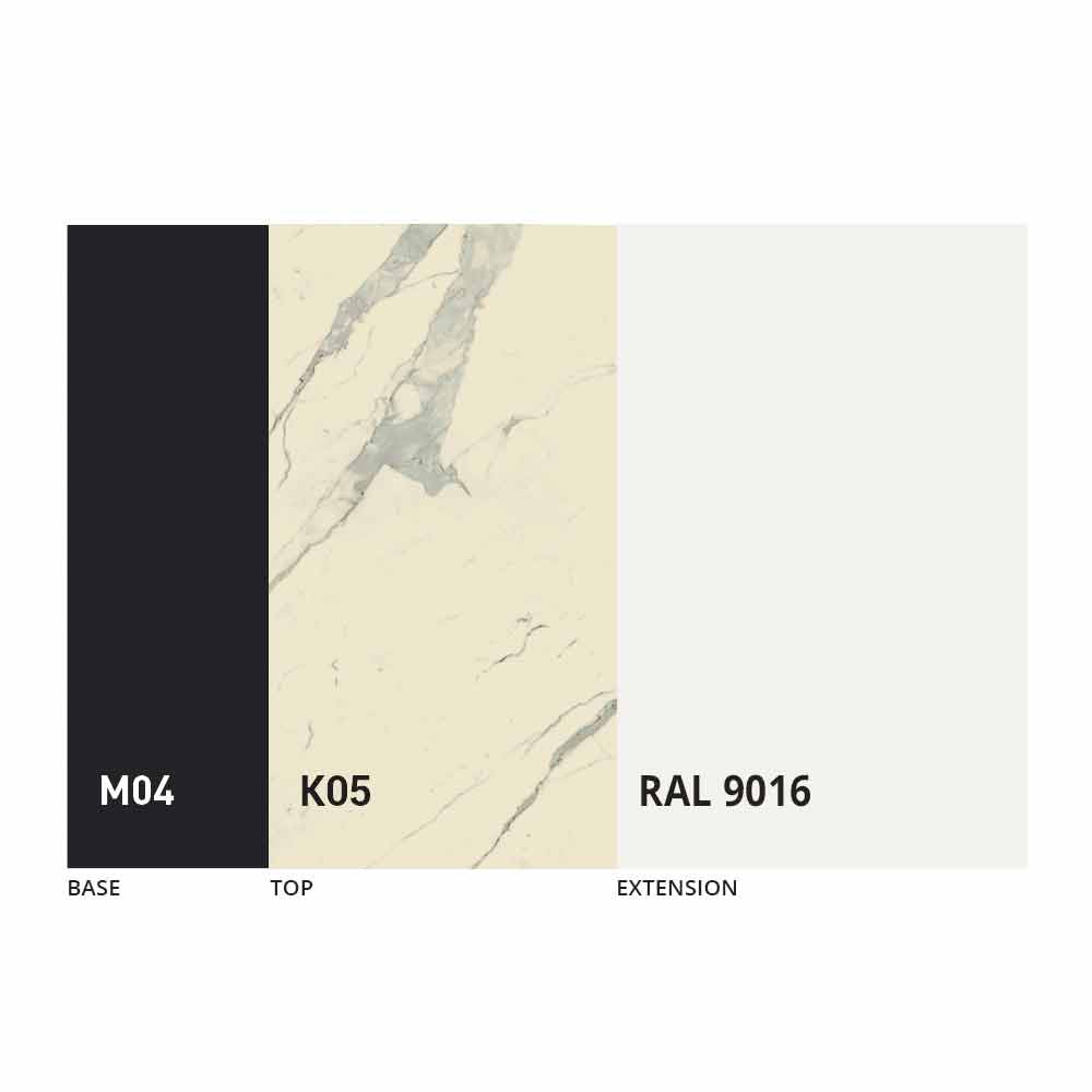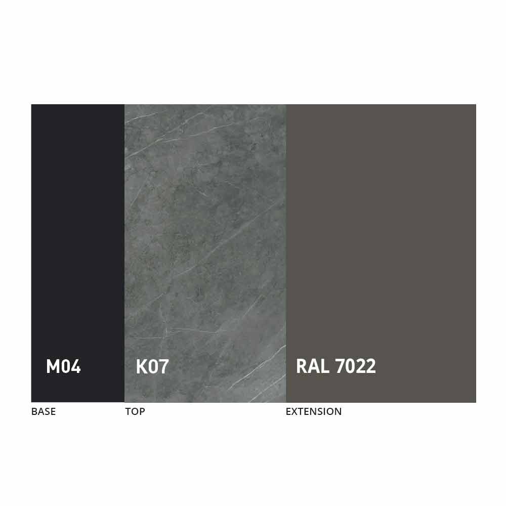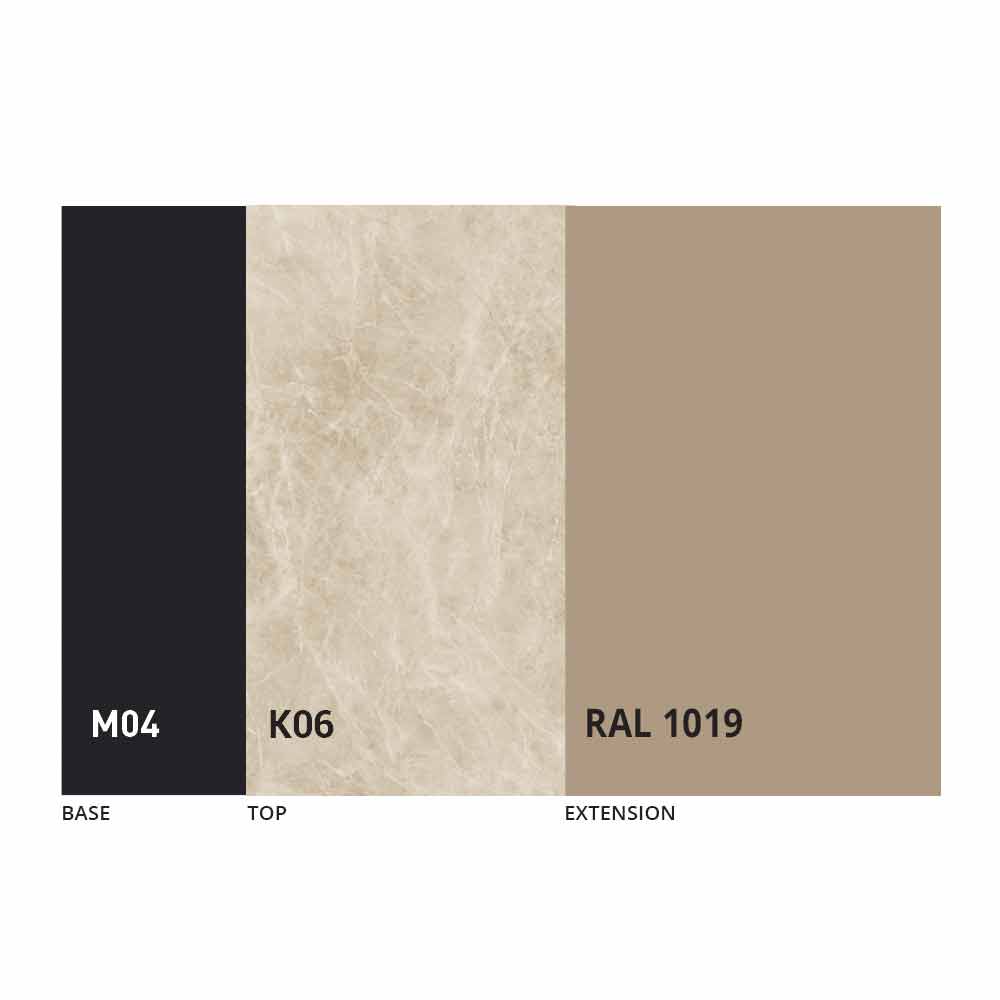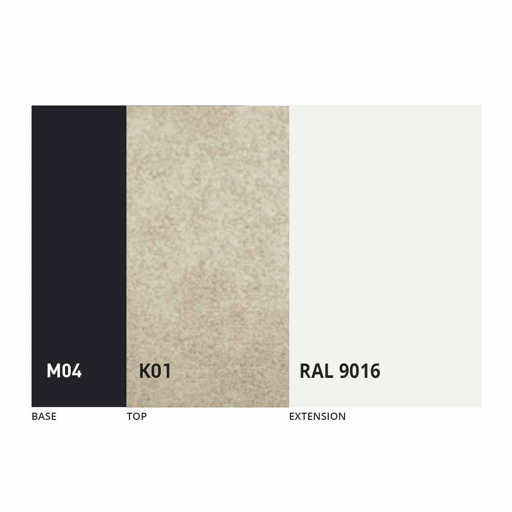 Bordsskivan och basen kan anpassas med olika material och provfinish eller RAL-lackering. För information, kontakta oss genom att använda det lämpliga formuläret "