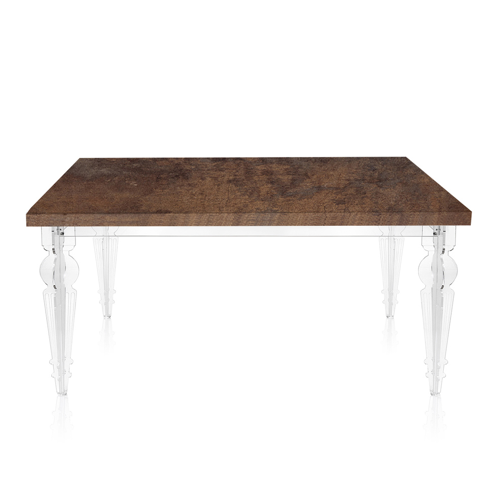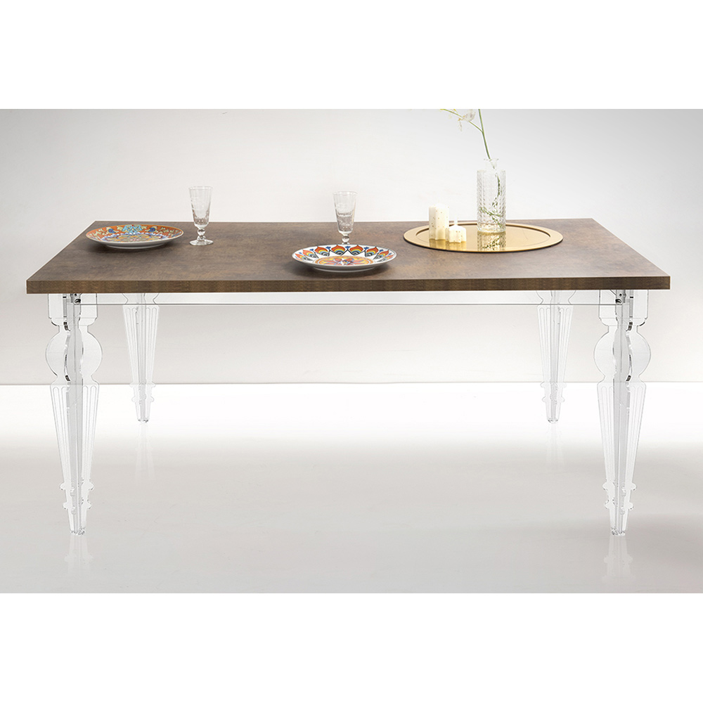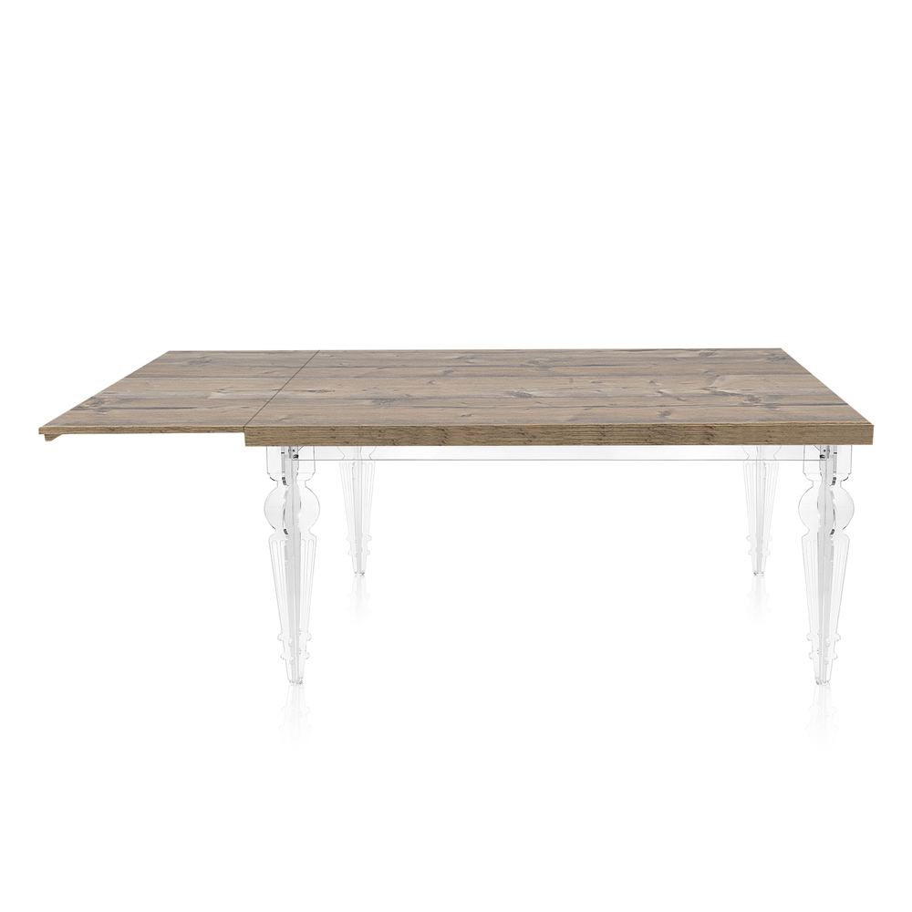 Utdragbart matbord upp till 255 cm i plexiglas och trä Tillverkat i Italien.