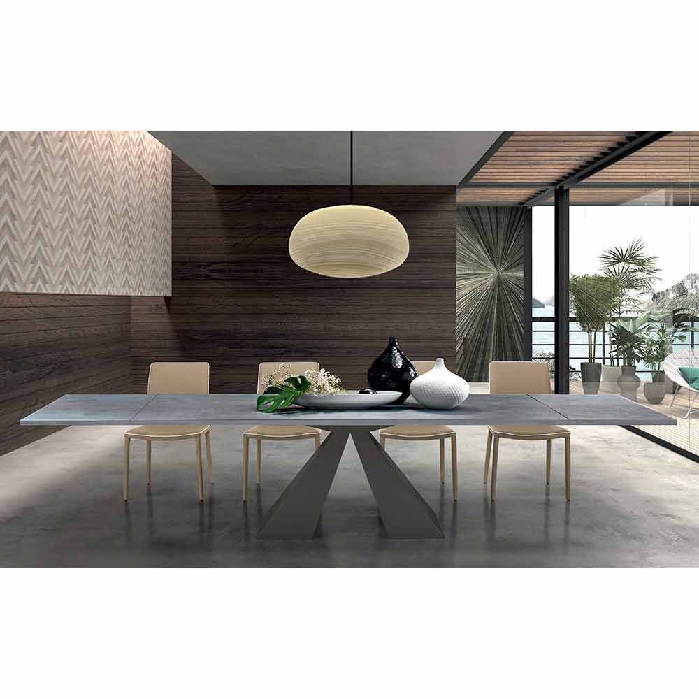 Utdragbart matbord i HPL-laminat och stål Tillverkat i Italien, hög kvalitet.