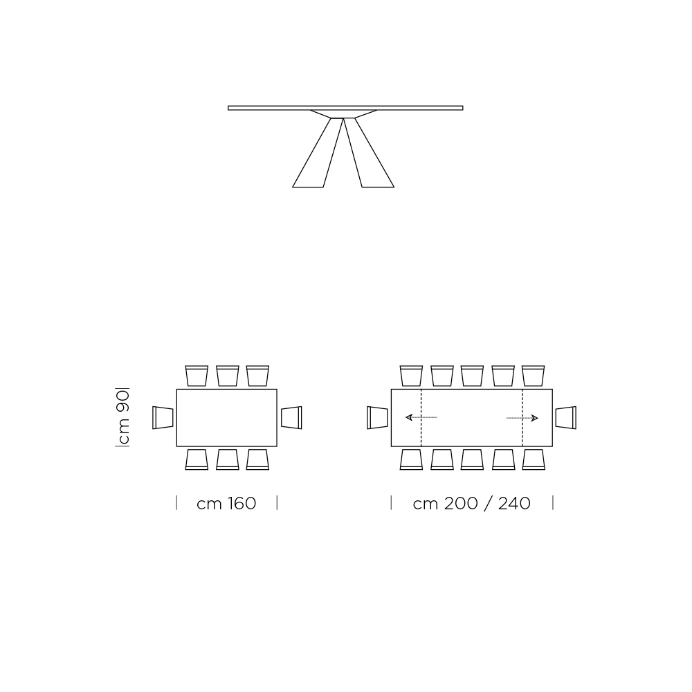 - L 160/240 x D 90 x H 75,3 cm 12 säten (2 förlängningar på 40 cm);