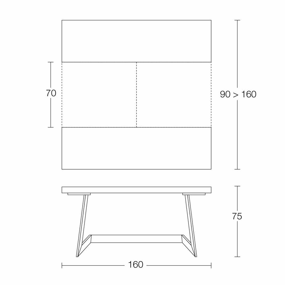 Åtgärder:- B 160 x D 90 (160) x H 75 cm