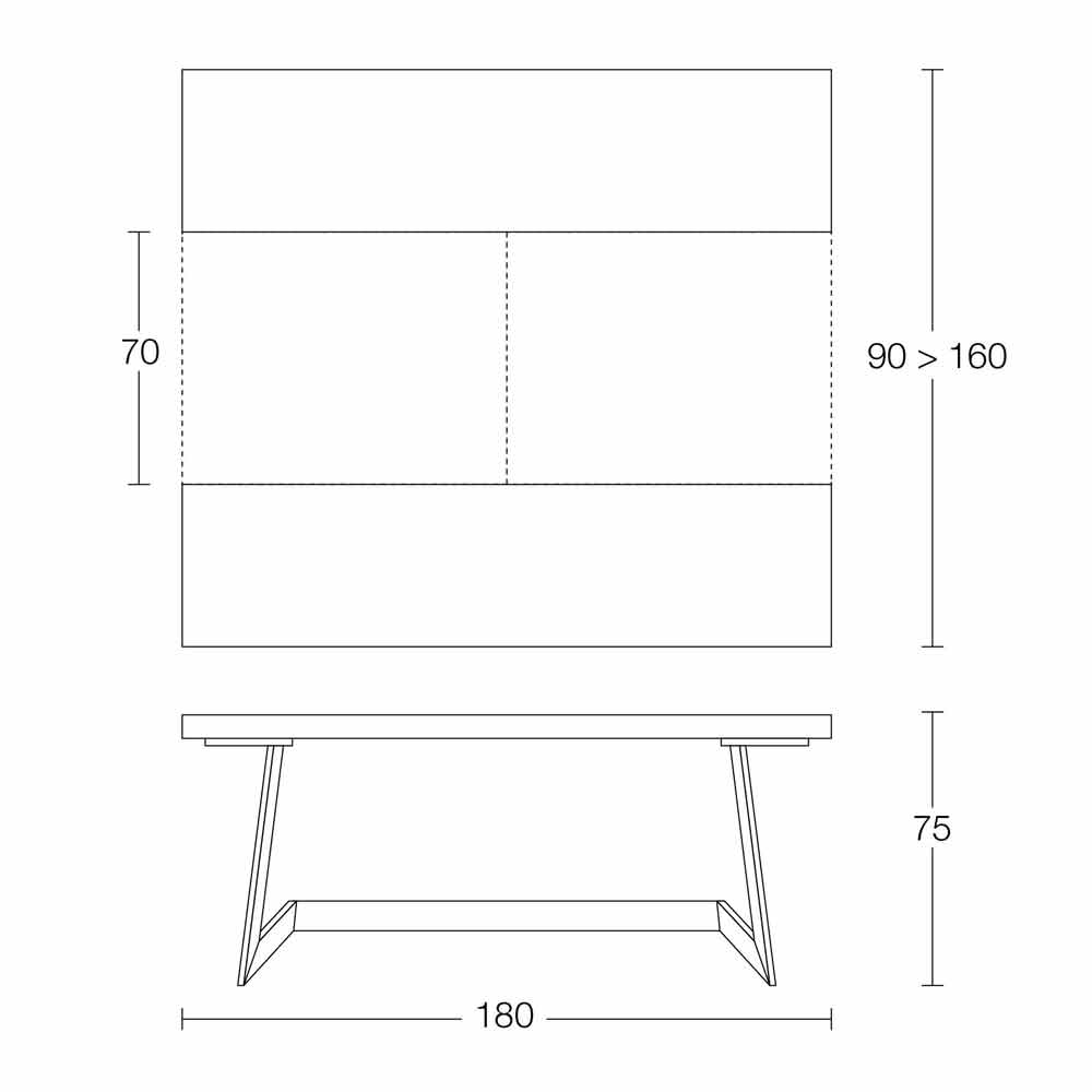 - B 180 x D 90 (160) x H 75 cm