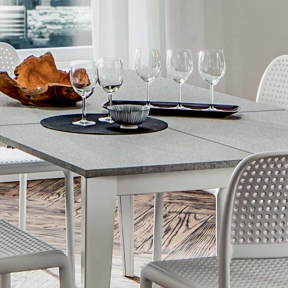 Utdragbart matbord med fyrkantig skiva i hpl Tillverkat i Italien, hög kvalitet.