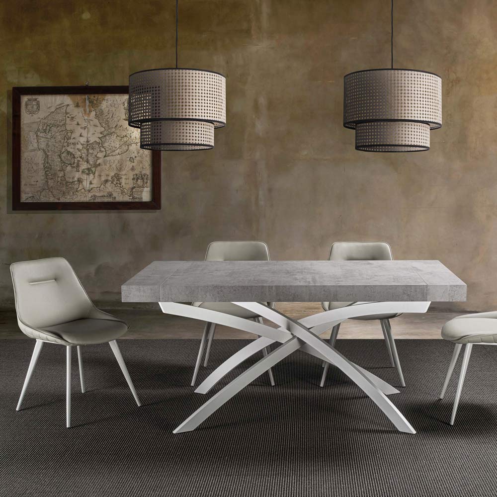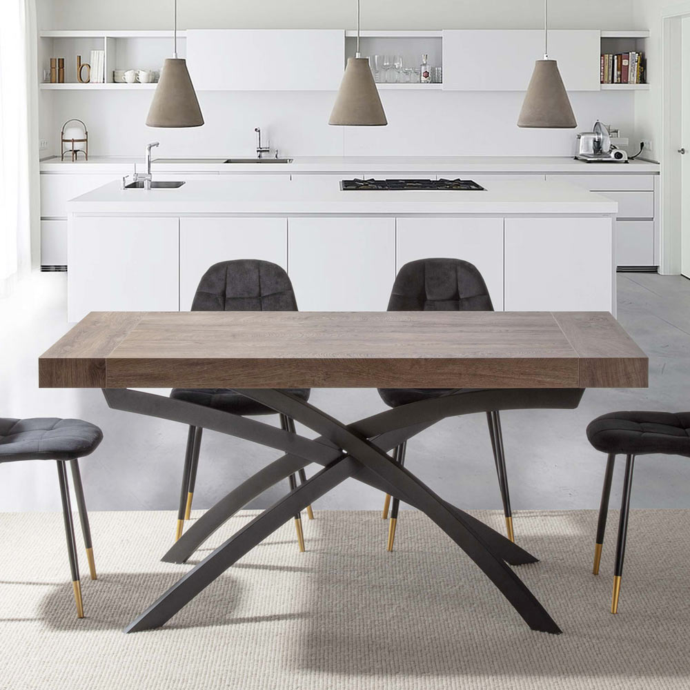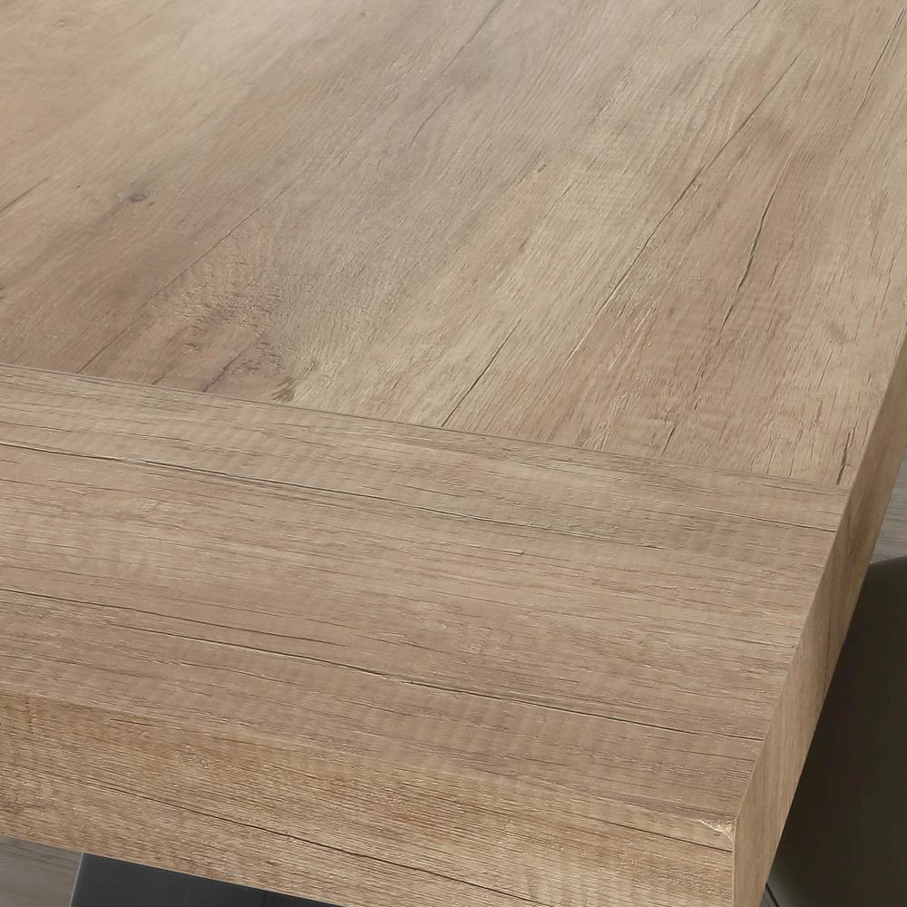 melaminträskiva som är utdragbart upp till max 260 cm tack vare matchande förlängningar placerade under skivan. Just för denna egenskap kan den ta emot ett större antal gäster som öppnar på ett extremt enkelt sätt och möjliggör en lika enkel avslutning när måltiden väl är över. Dess design kombinerar därför