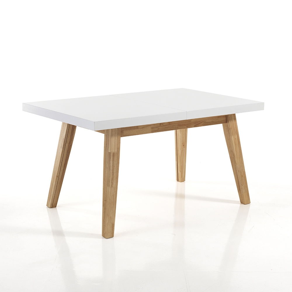 Utdragbart matbord i lackerad MDF och massivt trä.