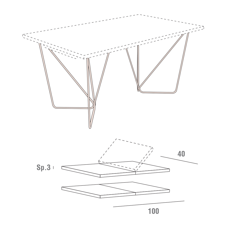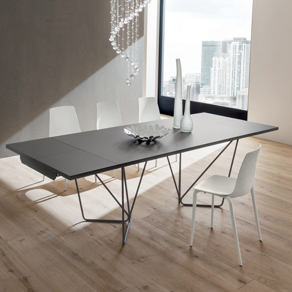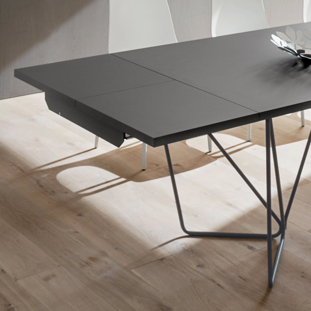 två sidoförlängningar (40 cm vardera) som matchar toppen med en vikbar öppningsmekanism. På så sätt blir bordet en inredningslösning speciellt lämpad för dem som älskar att organisera luncher och middagar genom att ta emot vänner och släktingar för underbara stunder i sällskap, och återvända för att ta ett mindre utrymme när det väl är stängt. Det som ökar bordets kvalitet och värde är valet att använda fenix, ett material som genom användning av