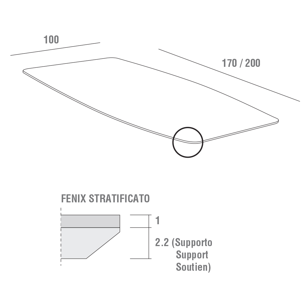 motståndskraftig yta, behaglig att ta på och extremt ogenomskinlig , element som, förutom att öka den funktionella sidan av bordet, understryker och komplettera den raffinerade estetiken som ger en