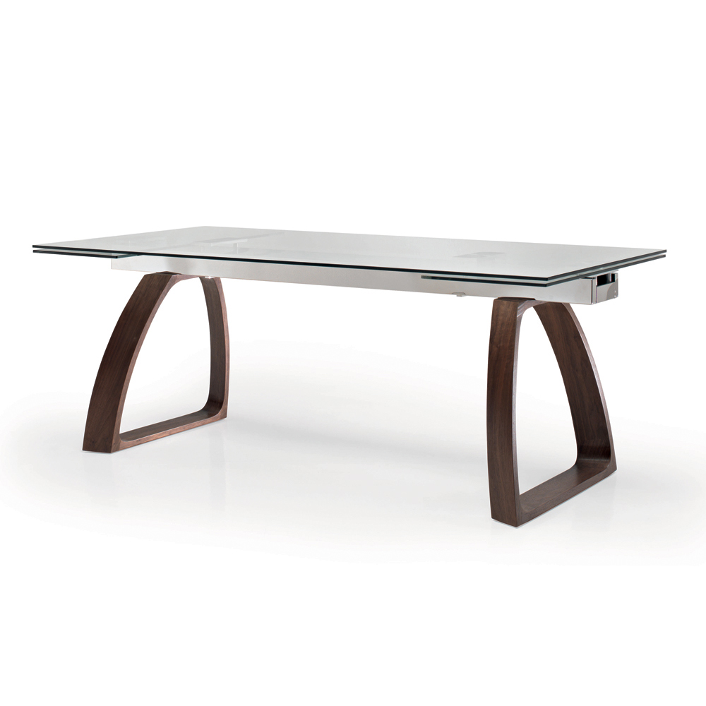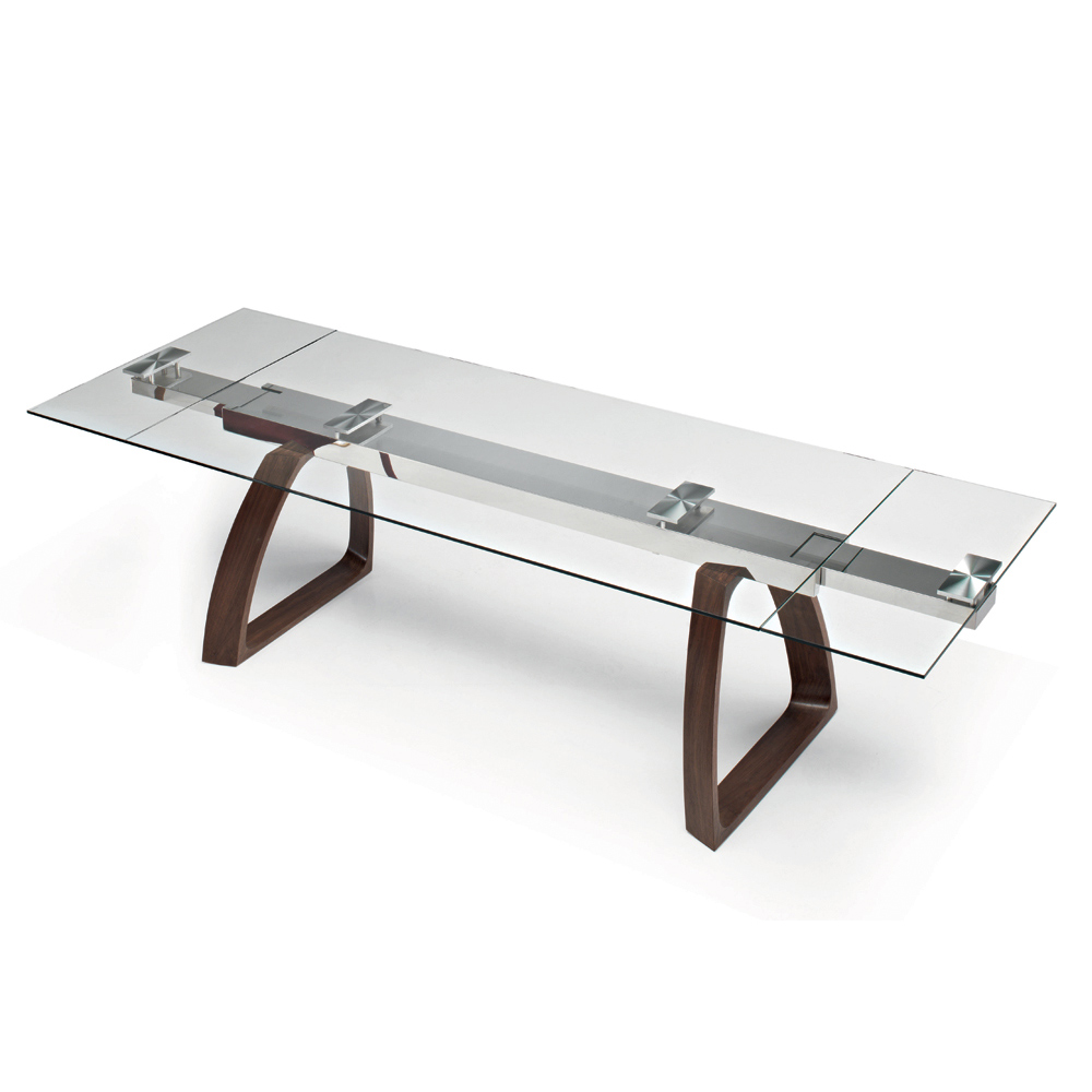 Utdragbart matbord med glasskiva och träbotten Made in Italy.