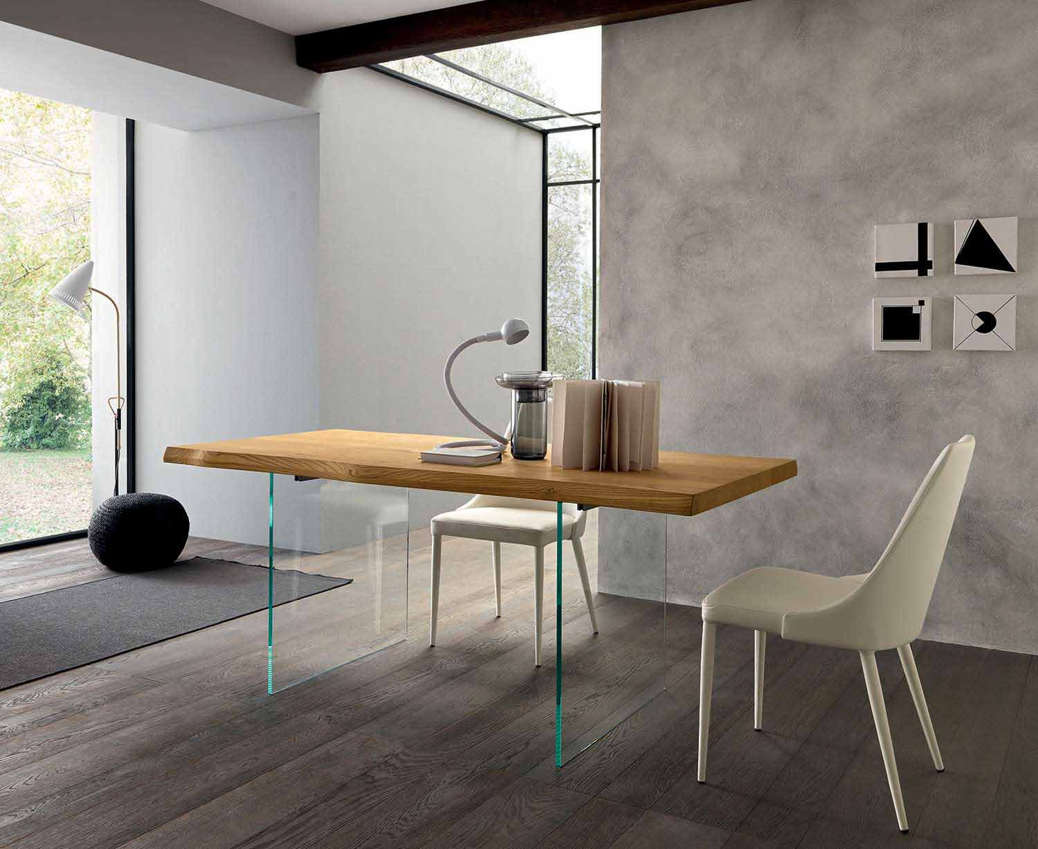 Utdragbart matbord med träskiva och glasstruktur Tillverkat i Italien.