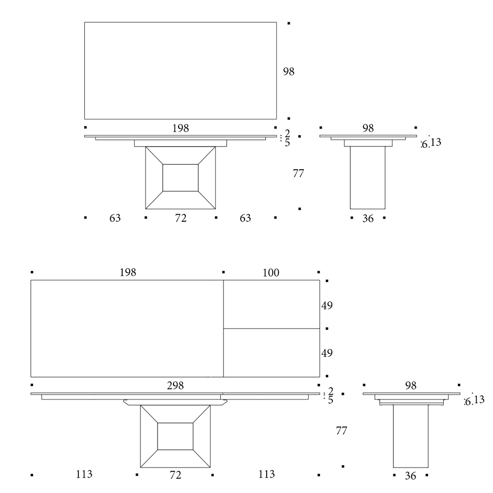 - 198/298 x 98 x 77 cm