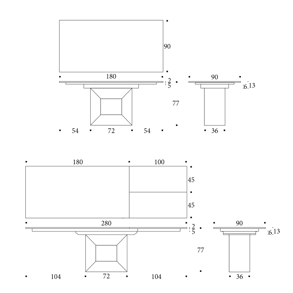 Toppen är utdragbar med en metallram, teleskopmekanism och synkroniserad öppning. Den inre förlängningen sträcker sig som en bok. Förlängningen förlängs med en kontinuerlig riktning.