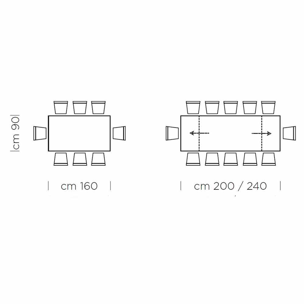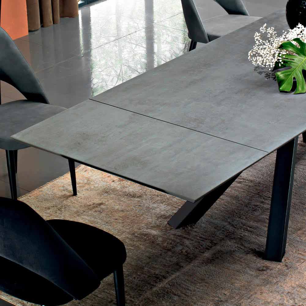 Utdragbart matbord med hpl laminatskiva och stålunderrede, hög kvalitet Made in Italy.