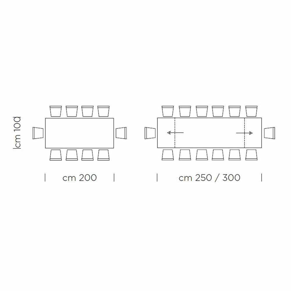 avtagbara fästena på de separata förlängningarna som ska sättas in, kan nå upp till 300 cm i längd vilket gör den till den perfekta lösningen för dem som älskar att organisera luncher och middagar i sällskap, skapa en