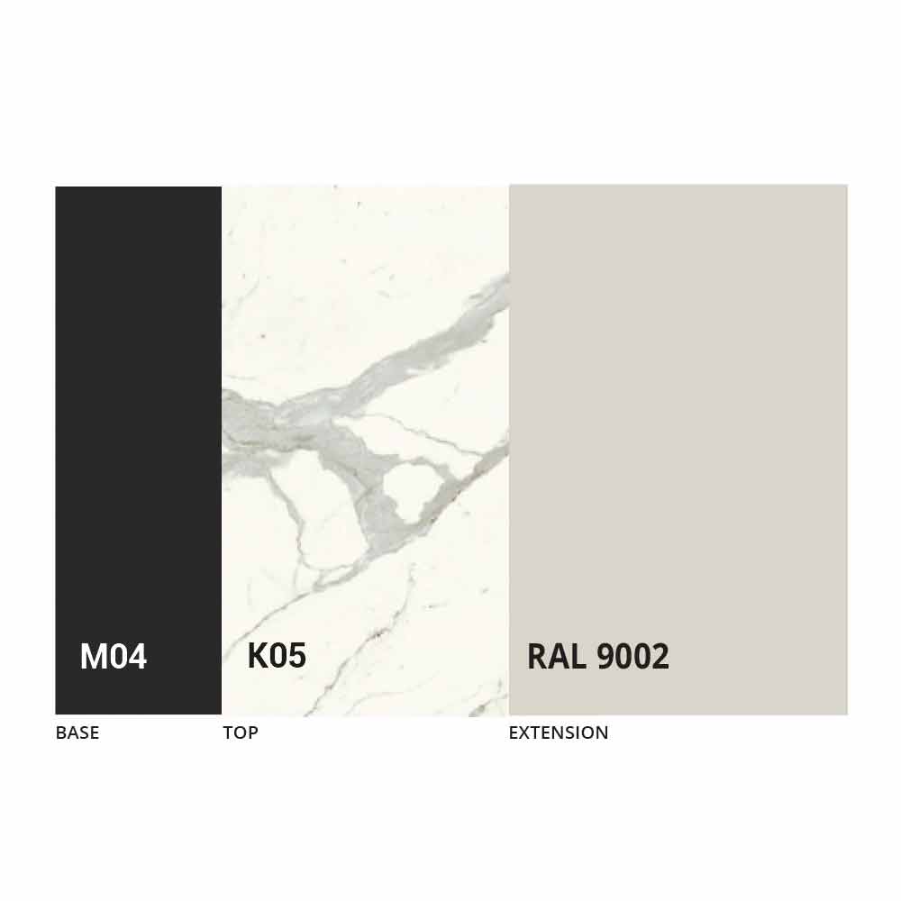 Bordsskivan, förlängningen och basen på bordet kan anpassas med olika provfinish. För information, kontakta oss genom att använda formuläret "