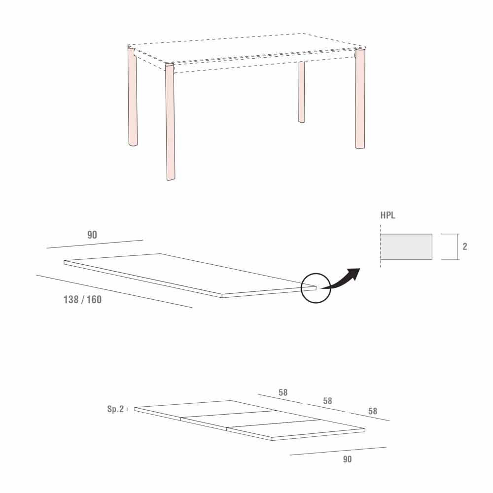 utdragbara toppen som kan nå en längd på 334 cm, vilket gör den till den perfekta idén för dem som älskar att organisera luncher och middagar med vänner och behöver en lösning som är lika praktisk som modern, som kan skapa en underbar harmoni med den omgivande inredningen. För att understryka dess fantastiska estetik är hpl-toppen, en