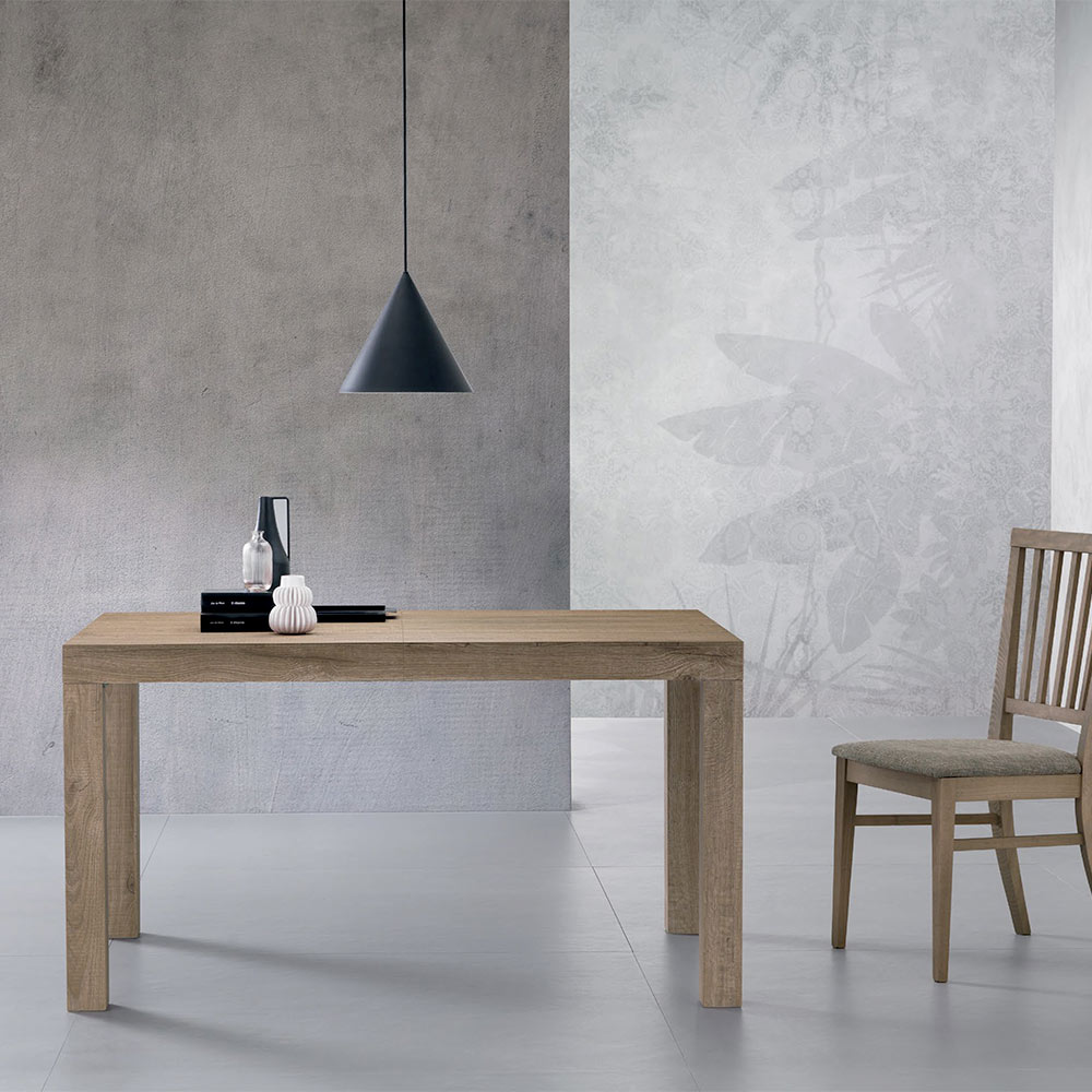 Detta bord är ett sant exempel på minimalistisk design som varken kompromissar med styrka eller funktionalitet. Tillverkat av ekbehandlad laminat, vilket framhäver materialets textur och värme, utmärker sig detta bord med sin solida struktur och elegansen i sina rena, rena linjer. Den fyrkantiga formen och den breda skivan skapar en välkomnande och gemytlig atmosfär, perfekt för att möblera din matsal med stil.