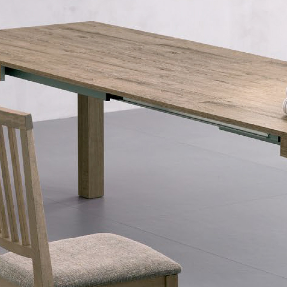 Utdragbart rektangulärt bord med laminatskiva. Hopfällbar yta på 80 mm.