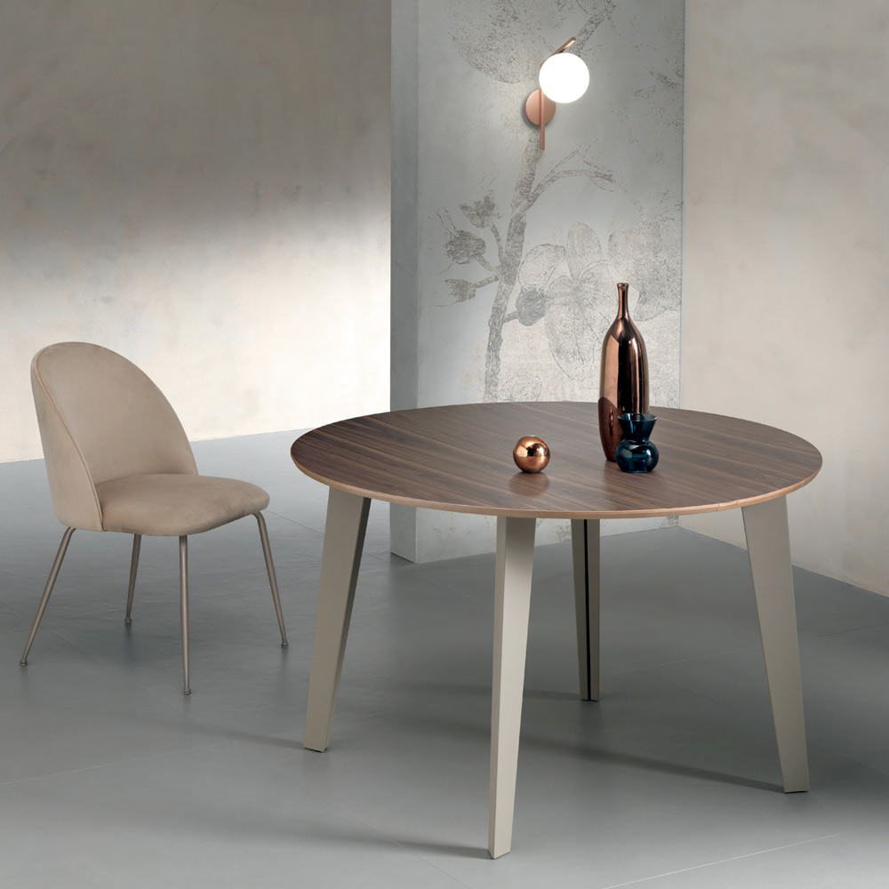Detta bord förkroppsligar tidlös elegans och mångsidighet, perfekt för dig som söker ett designermöbel som kombinerar sofistikering och funktionalitet. Tillverkat av fint Canaletto-valnötsfaner , är den runda skivan utdragbar, vilket gör den idealisk för intima middagar eller större sammankomster. Den naturliga finishen framhäver träets skönhet och ger värme och ljusstyrka till utrymmet. Den smala tjockleken på 20 mm och basens moderna linjer, med en solid och samtida struktur , erbjuder en perfekt kontrast som berikar vilket utrymme som helst.