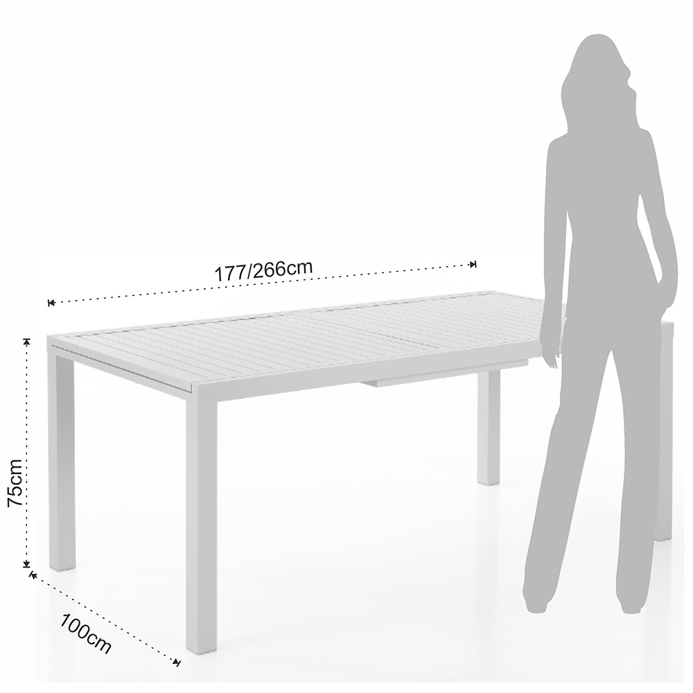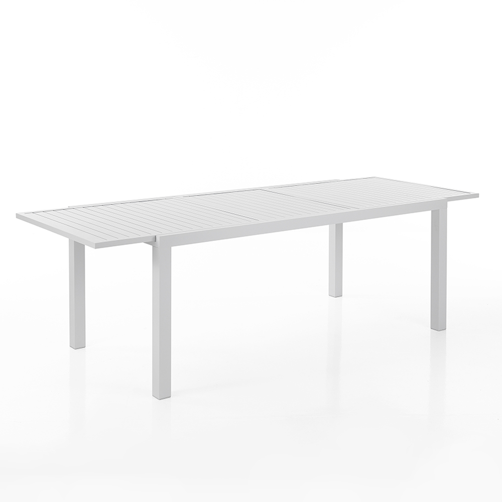 Detta trädgårdsbord är en triumf av minimalistisk elegans och modern funktionalitet . Med sin mattvita finish och den rena designen av dess linjer är detta bord en perfekt duk för alla typer av sociala utomhusmöten, från sommarmiddagar till bruncher under solen. Tillverkad av hållbara, väderbeständiga material, säkerställer den lång livslängd och enkelt underhåll, så att du kan fokusera på nöjet att underhålla utan bekymmer.