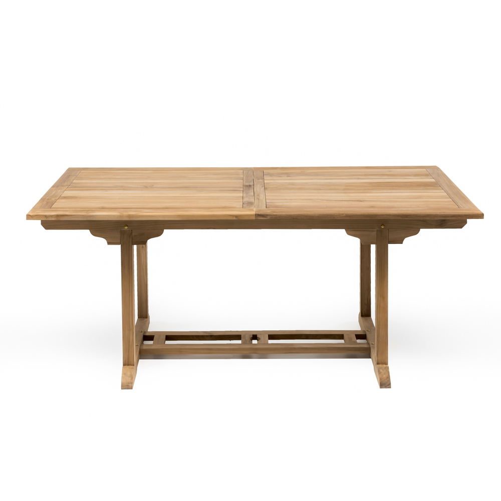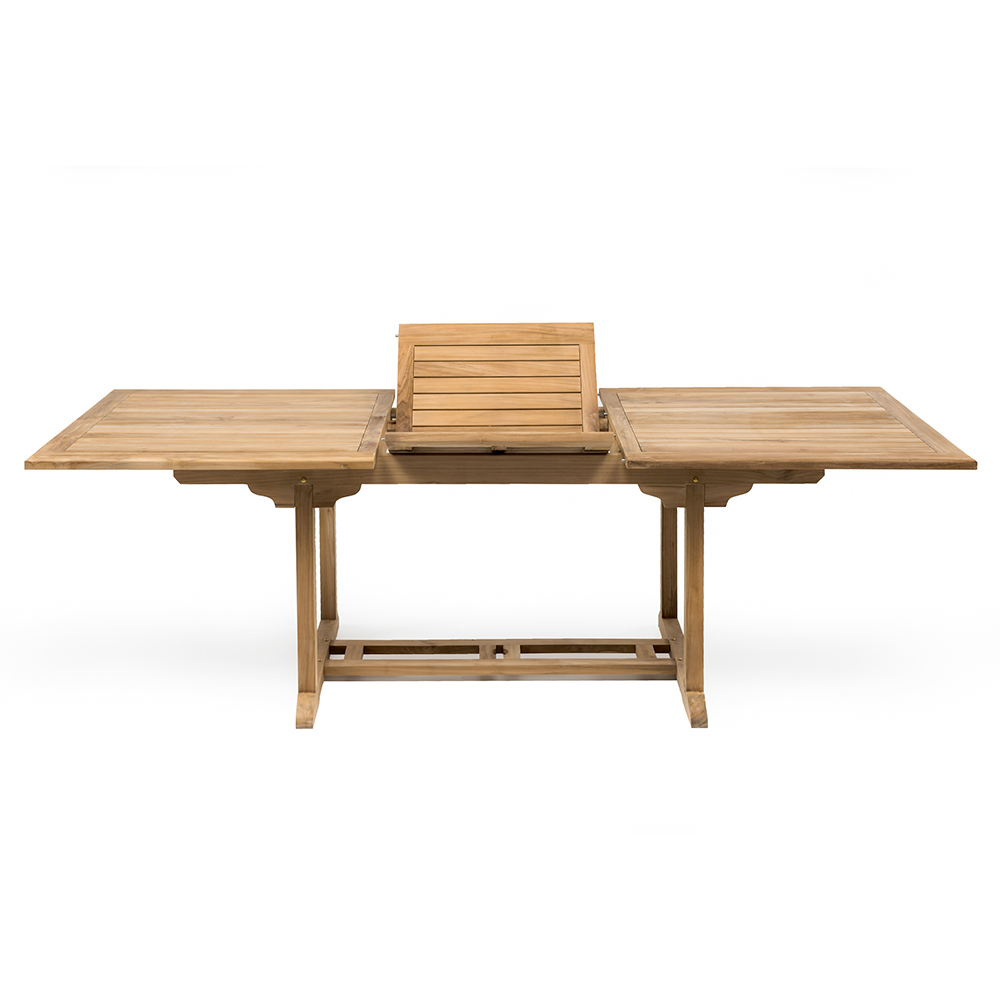 Utdragbart trädgårdsbord i teak i olika storlekar.