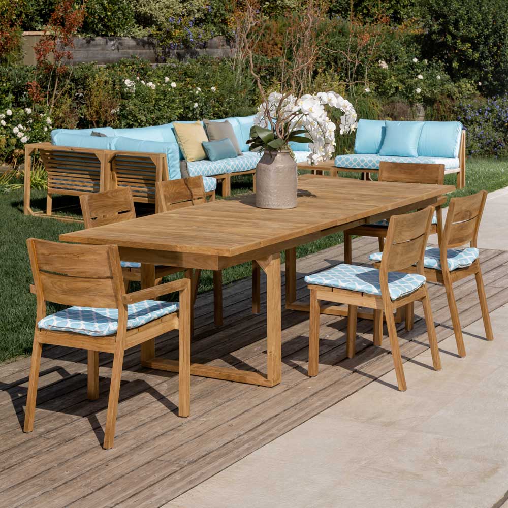 enkel men harmoniskt proportionerad möbel , lämplig för alla utomhusmiljöer, såsom terrasser, verandor, trädgårdar eller vid poolen, vilket skapar en fängslande atmosfär. Teakträet som används i konstruktionen garanterar
