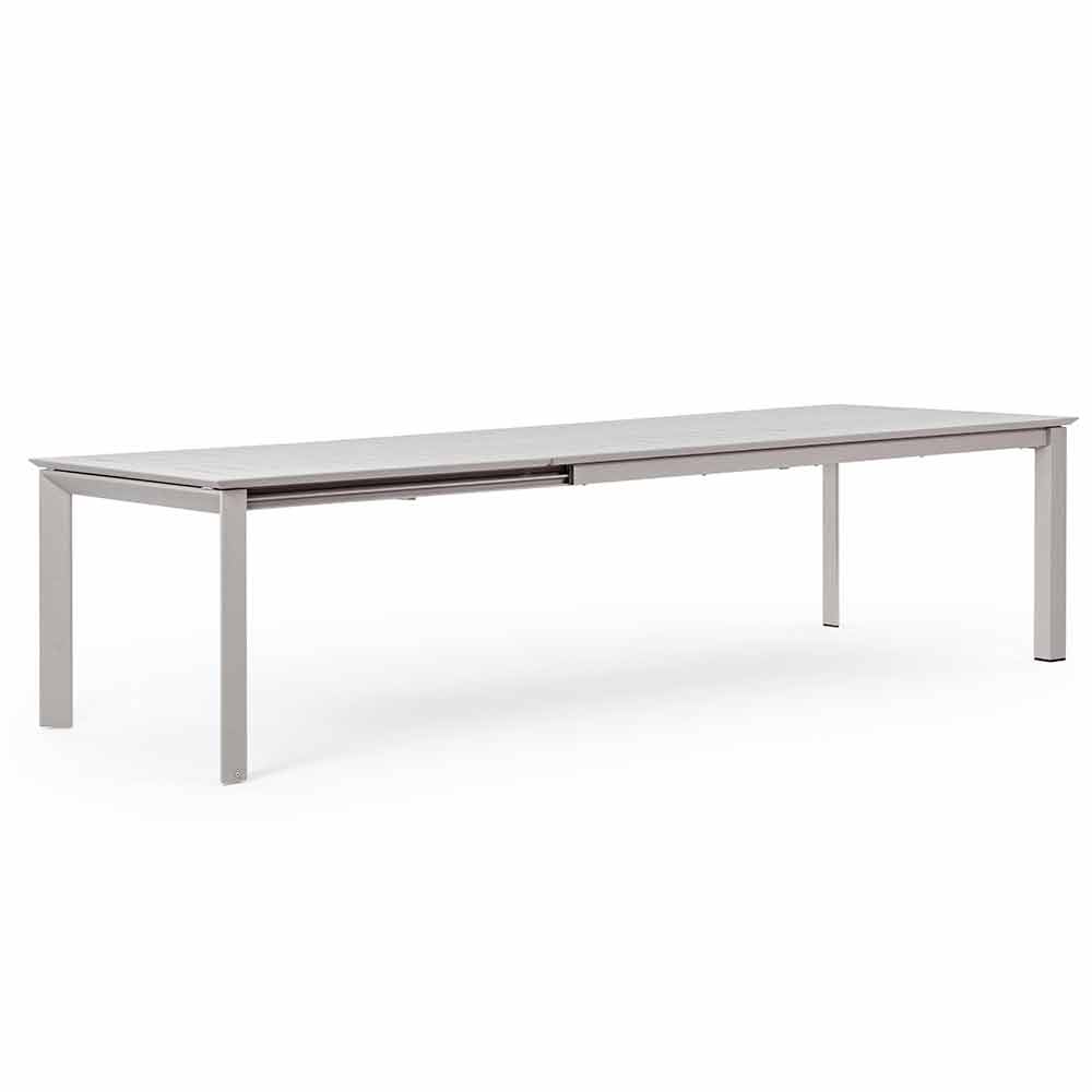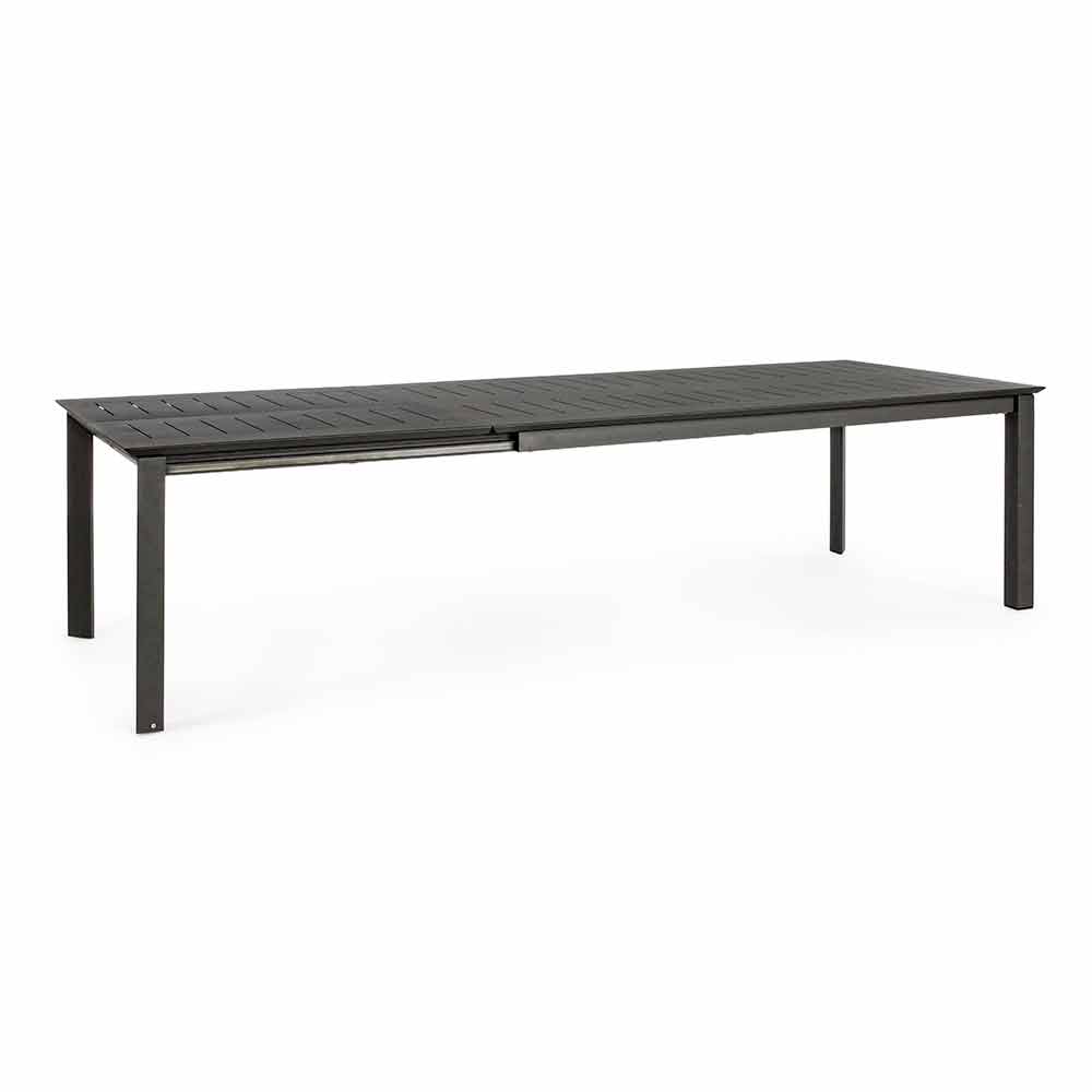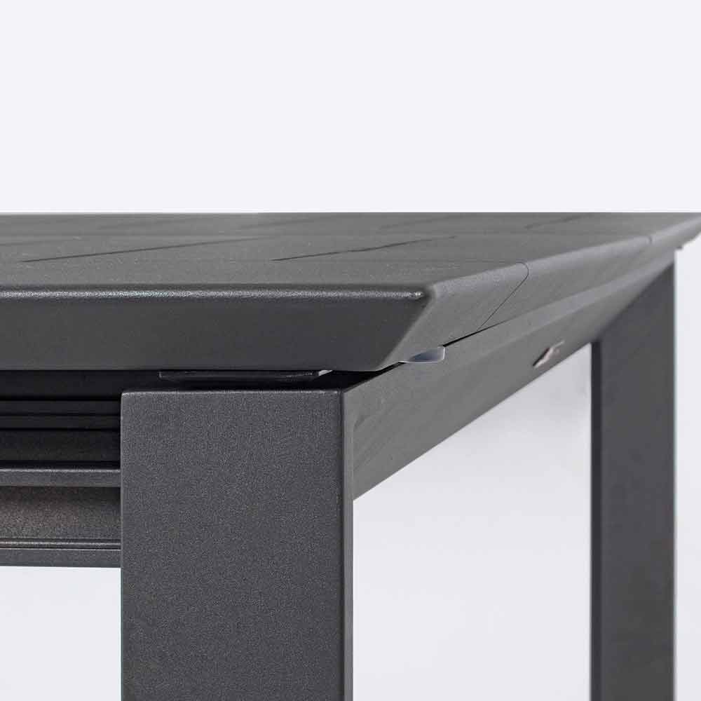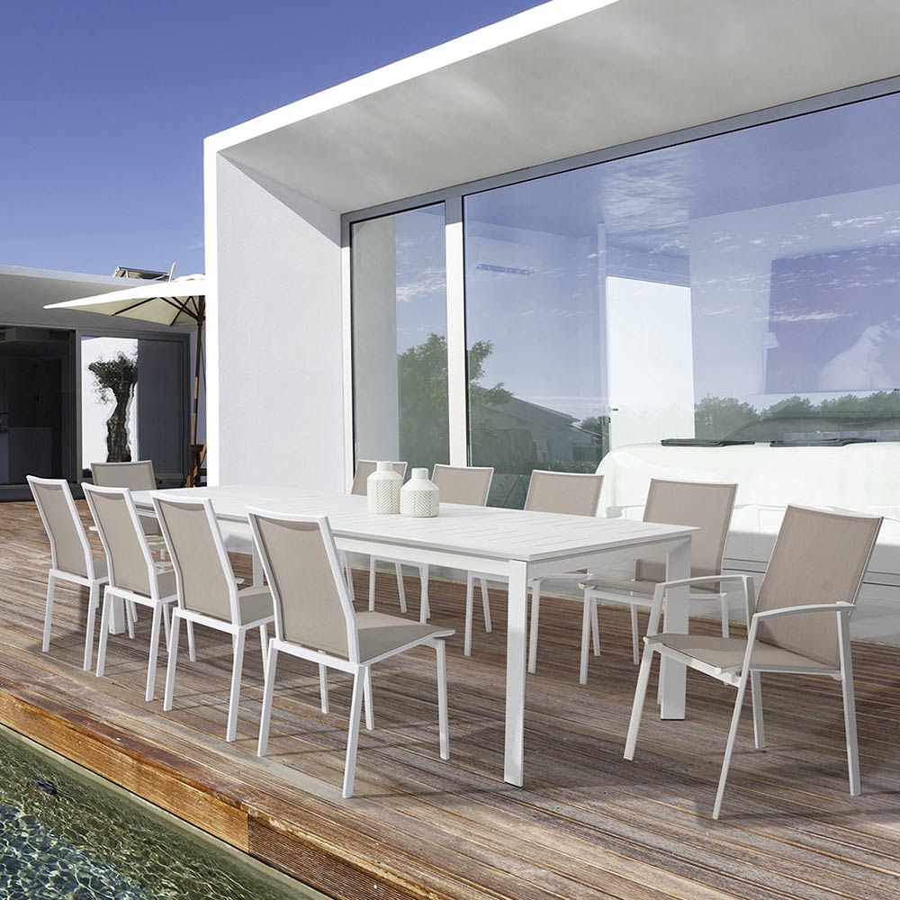 Utdragbart utomhusbord för 10 personer, modern design, i rastin, antracit eller vit aluminium.