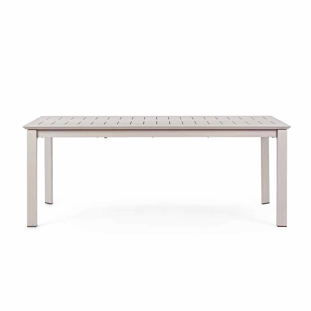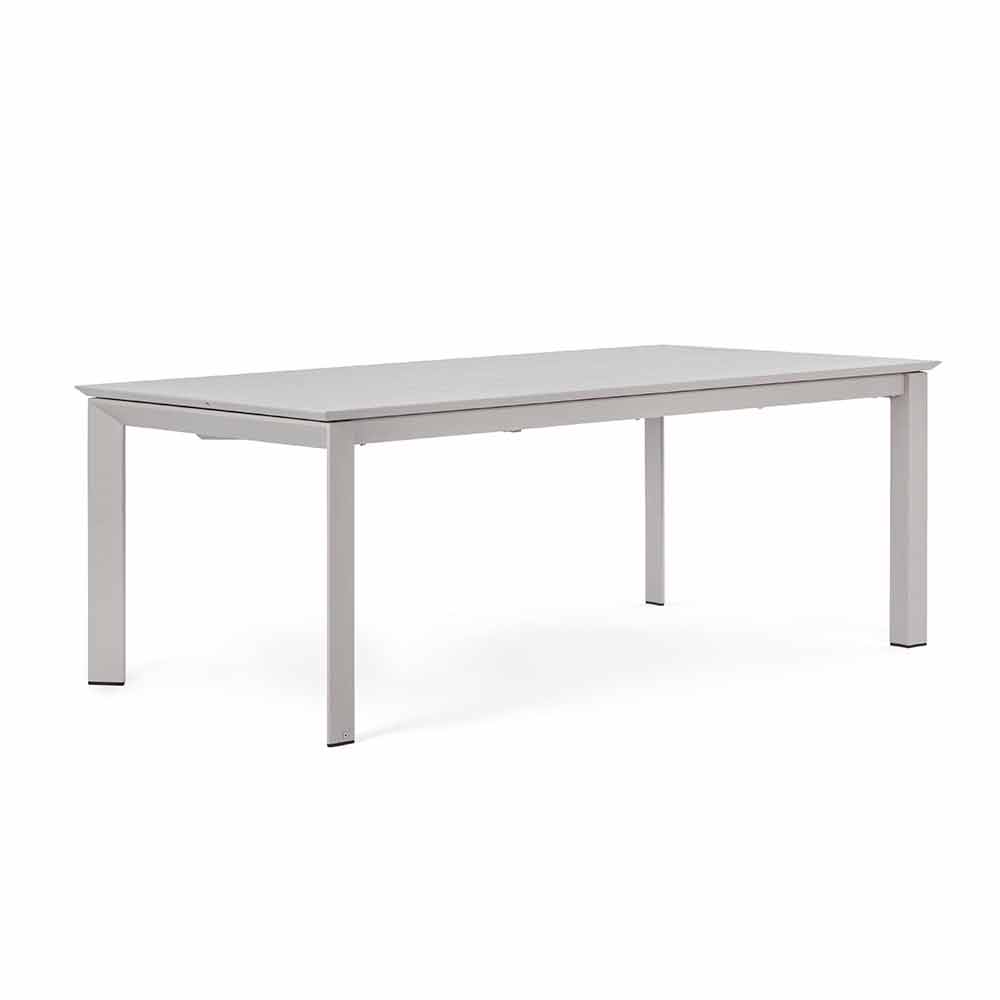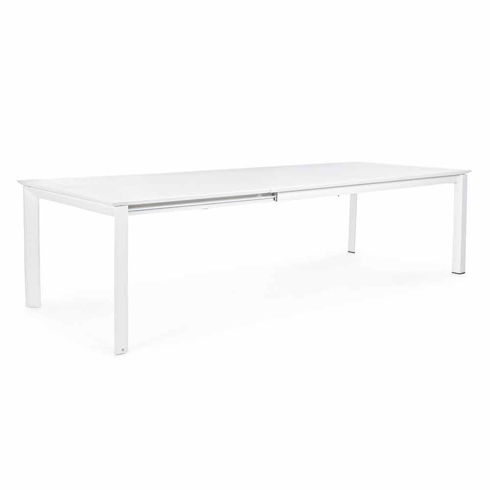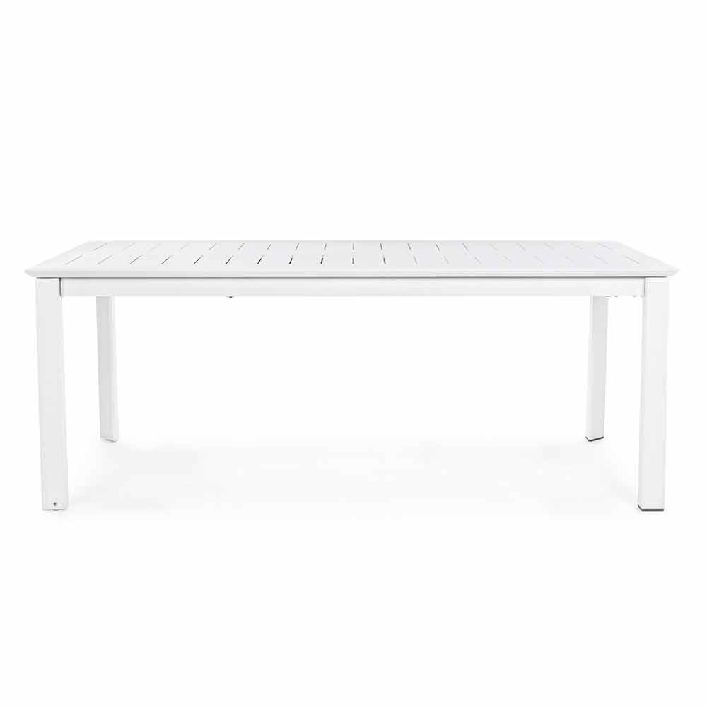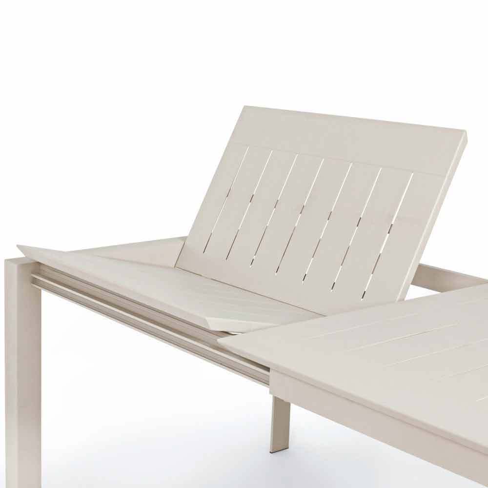 Utdragbart utomhusbord för 10 personer, modern design, i rastin, antracit eller vit aluminium.