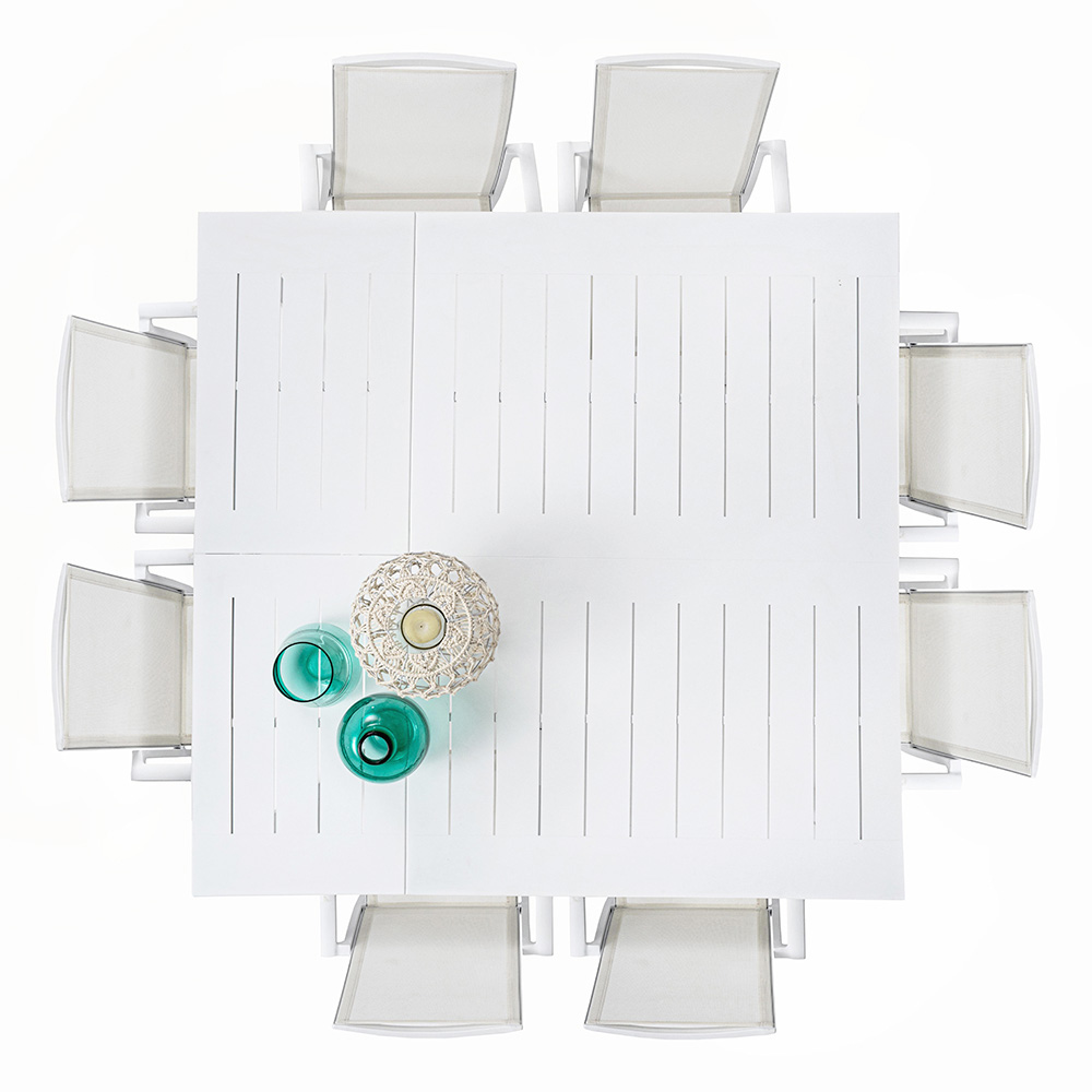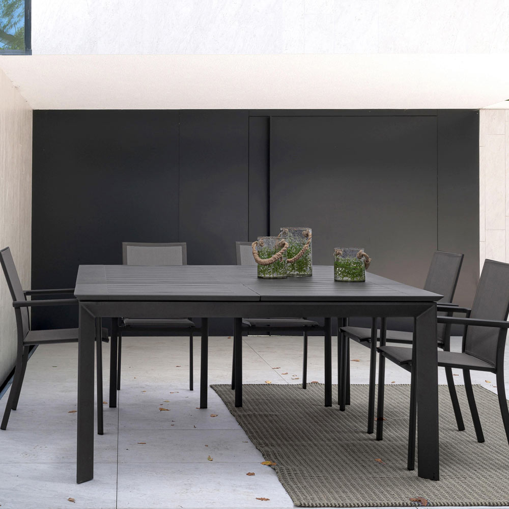 Utdragbart matbord utomhus i målad aluminium av hög kvalitet.