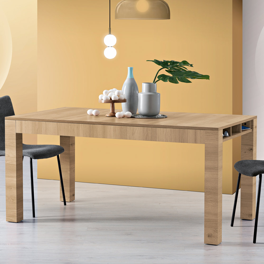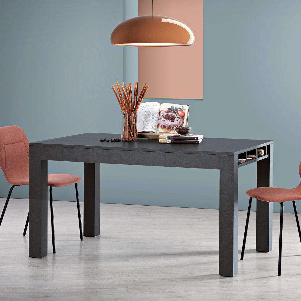 Förlängningsmekanismen är smidig och lättmanövrerad, designad för att maximera utrymmet utan att offra estetisk skönhet . Benen ger visuell och strukturell soliditet och är en påminnelse om den hantverksmässiga kvalitet som kännetecknar de bästa produkterna tillverkade i Italien .