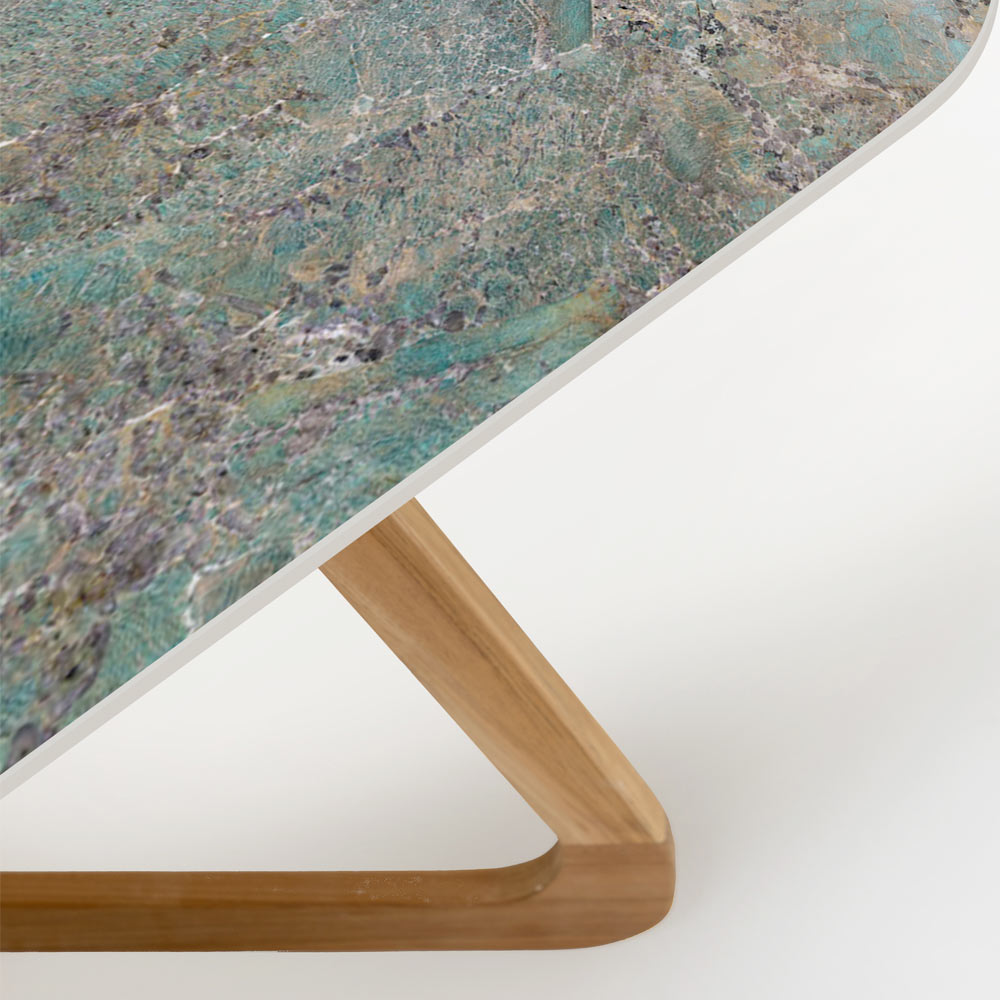 tillverkad i Italien. Detta exklusiva utomhusbord är en sann designpärla som kombinerar träets elegans med keramikens modernitet. Bordsskivan, tillverkad av högkvalitativ keramik med en fantastisk antikgrön nyans, erbjuder exceptionell väderbeständighet och varaktig skönhet.