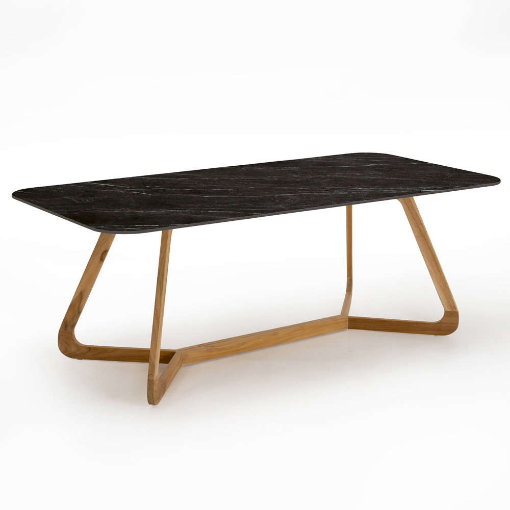 Rektangulärt trädgårdsbord i trä och keramik, Tillverkat i Italien