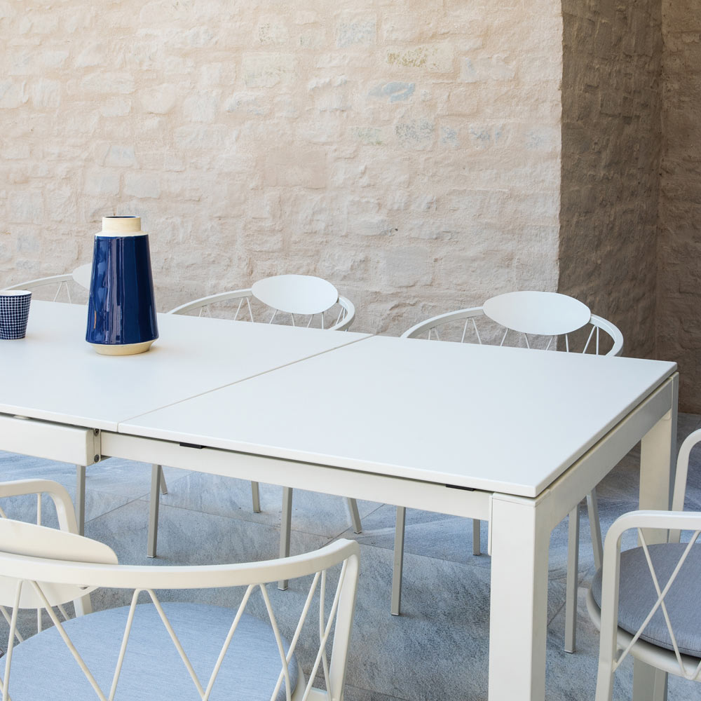 Utdragbart utomhusmatbord i pulverlackerat galvaniserat järn Tillverkat i Italien.