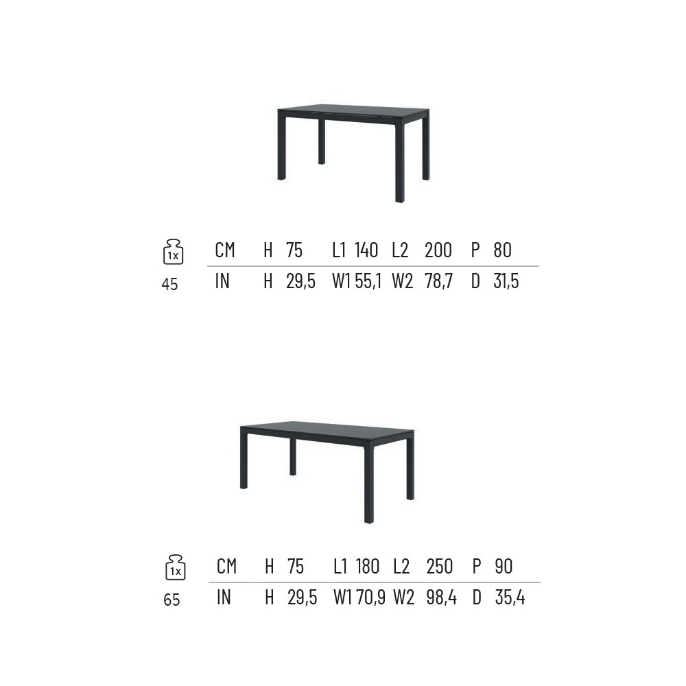- L 140/200 x D 80 x H 75 cm (1 förlängning på 60 cm);