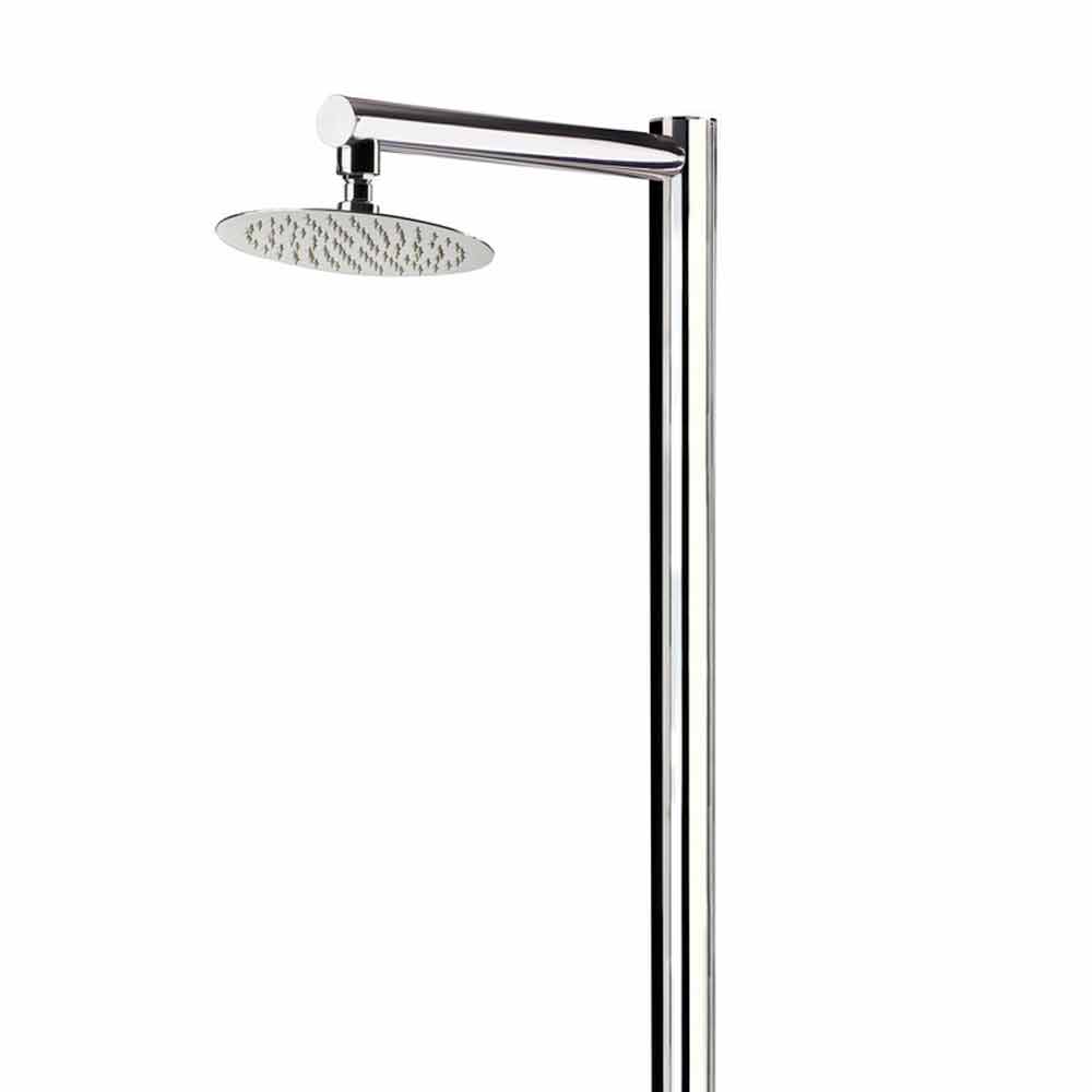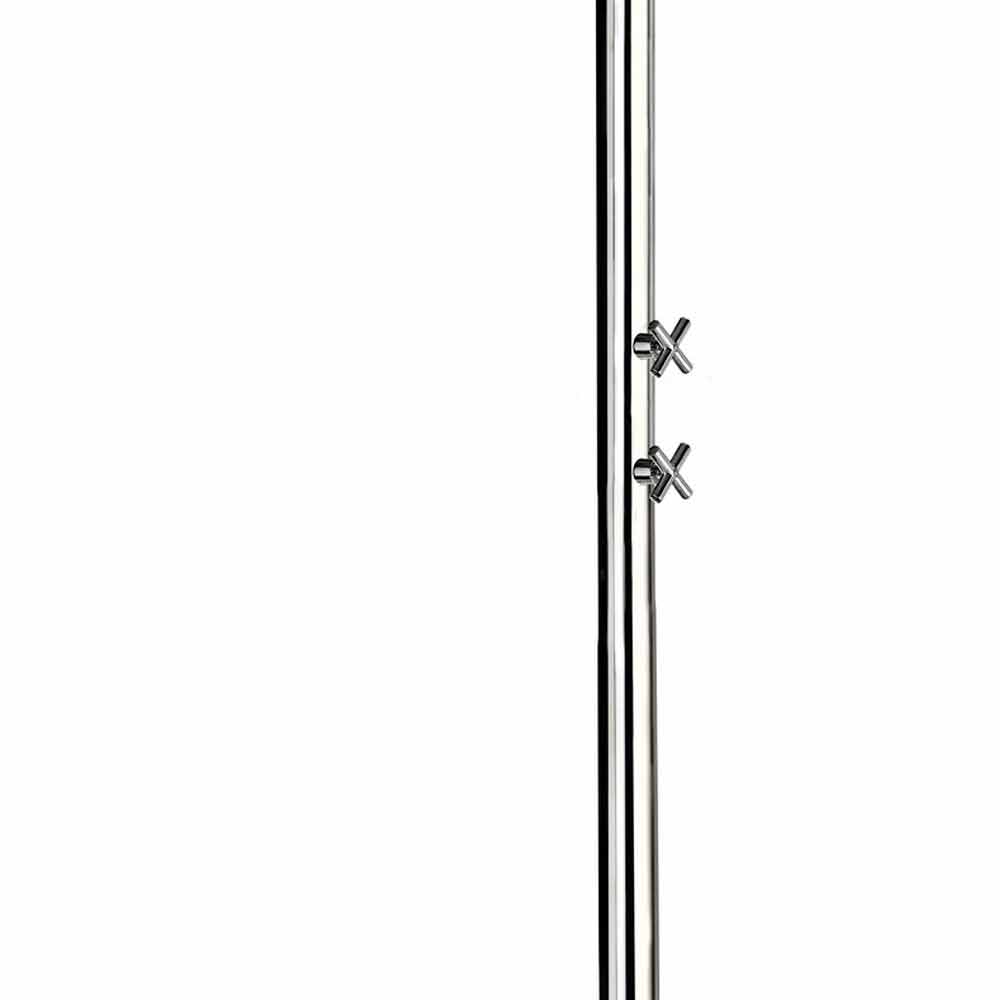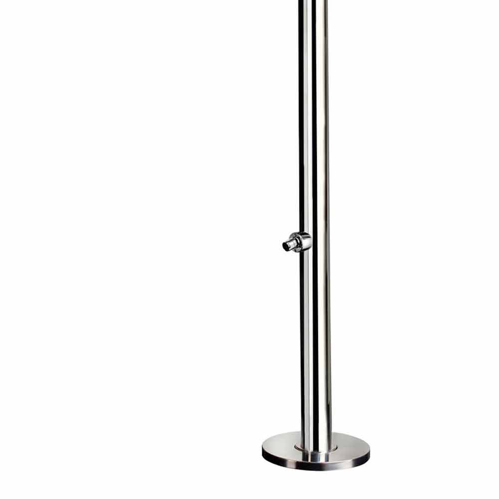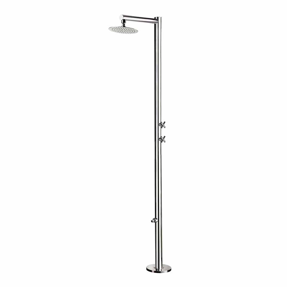 Utomhusdusch i rostfritt stål i polerad finish med fotbricka, tillverkad i Italien.