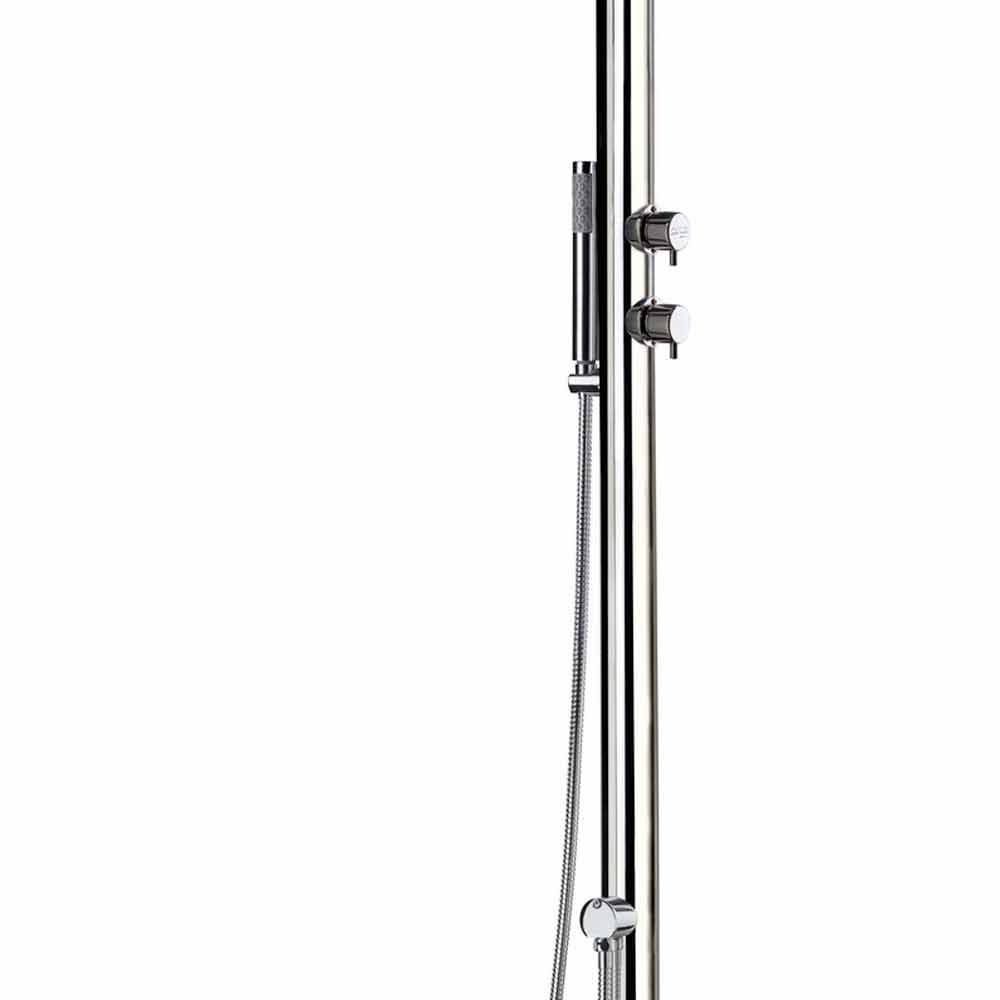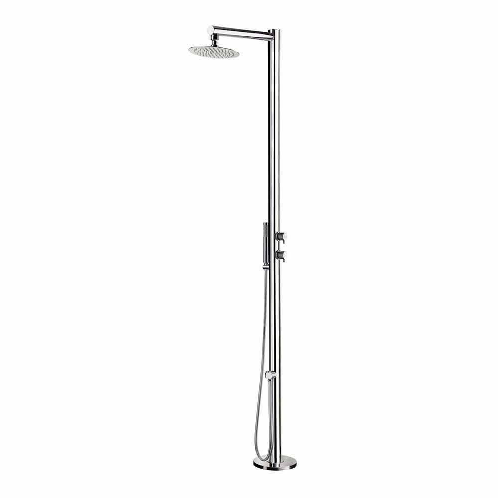 Utomhusdusch varmt/kallt vatten i rostfritt stål med polerad finish och handdusch Tillverkad i Italien.