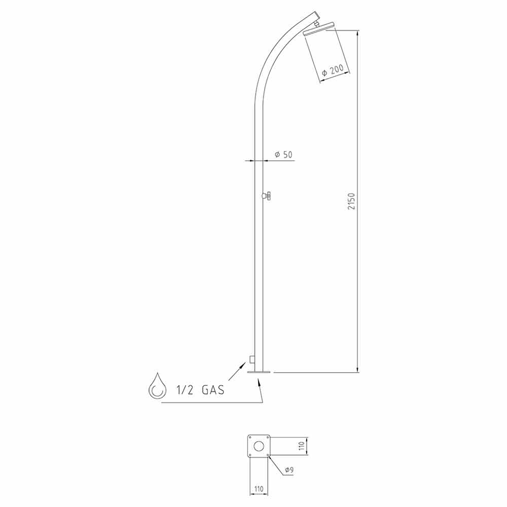 sin originalitet , en egenskap som ges av det moderna och banbrytande utseendet som gör den till en perfekt lösning för alla utomhusmiljöer som badorter och turistanläggningar men även privata miljöer som simbassänger och trädgårdar, där det är nödvändigt att berika estetiken med personlighet och karaktär. Denna dusch