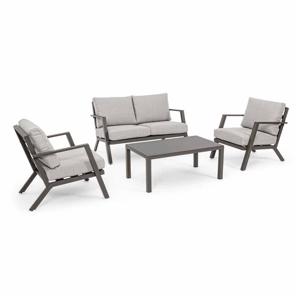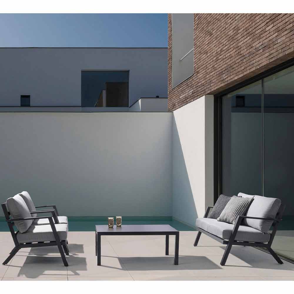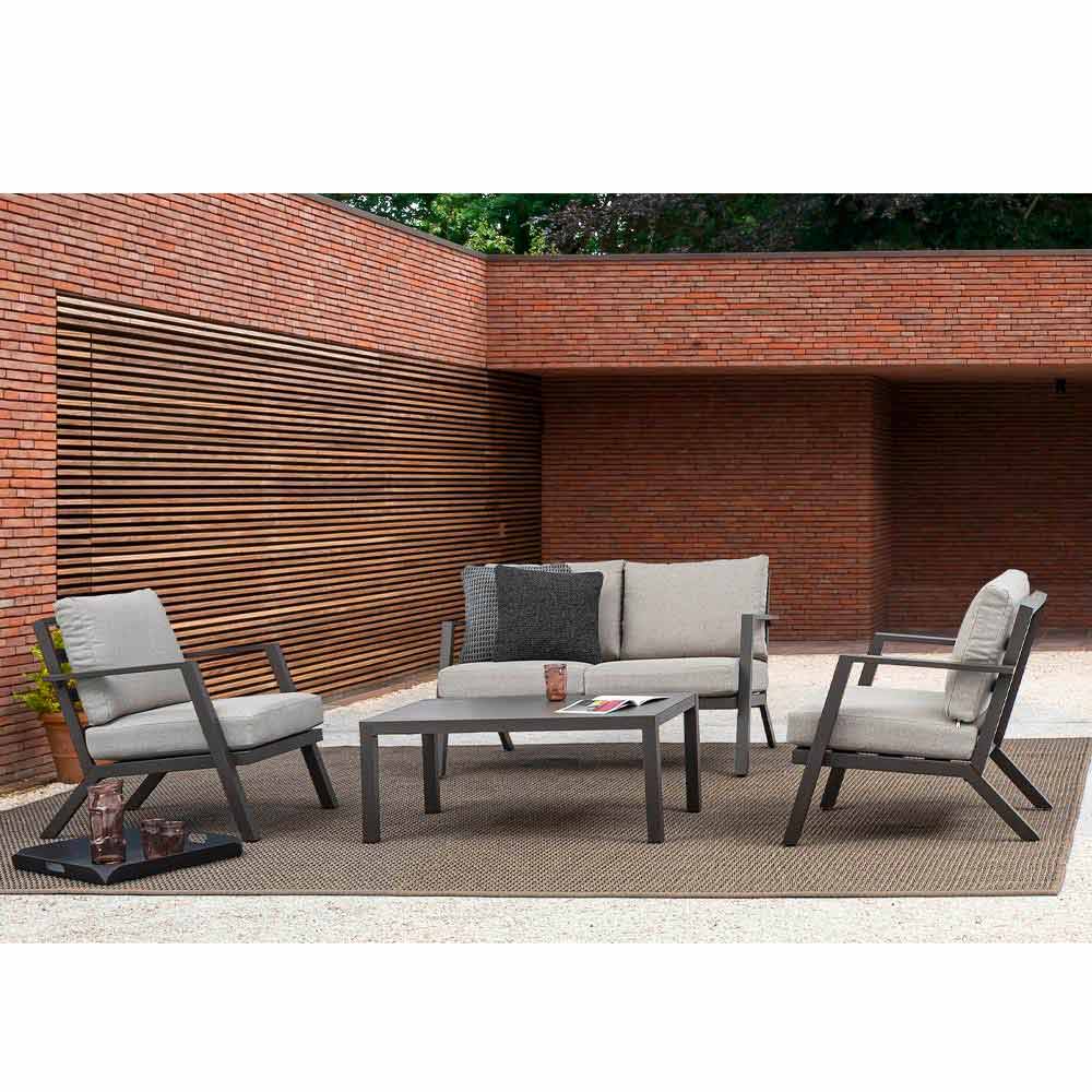 Utomhus vardagsrumskomposition i aluminium med avtagbara kuddar.