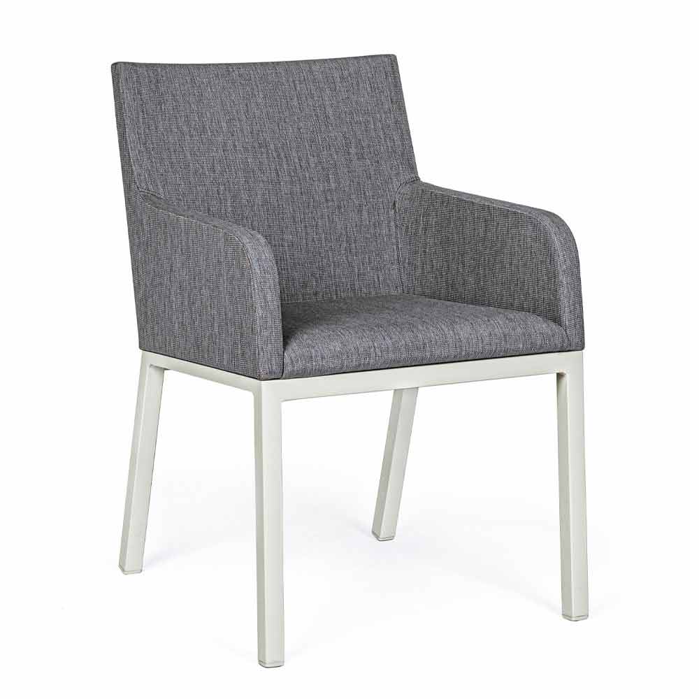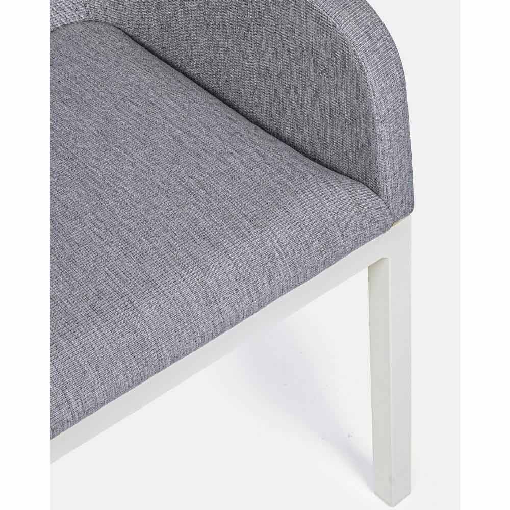 Pulverlackerad aluminiumstruktur (polyester), klädsel med blandat tyg (70% textilin och 30% olefin) och snabb torr skumvadd för utomhusbruk. Ben att montera.
