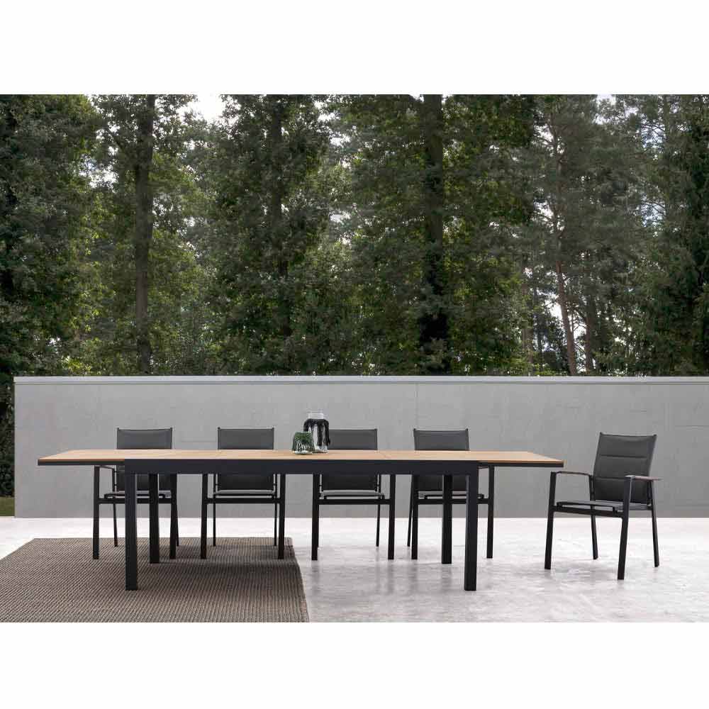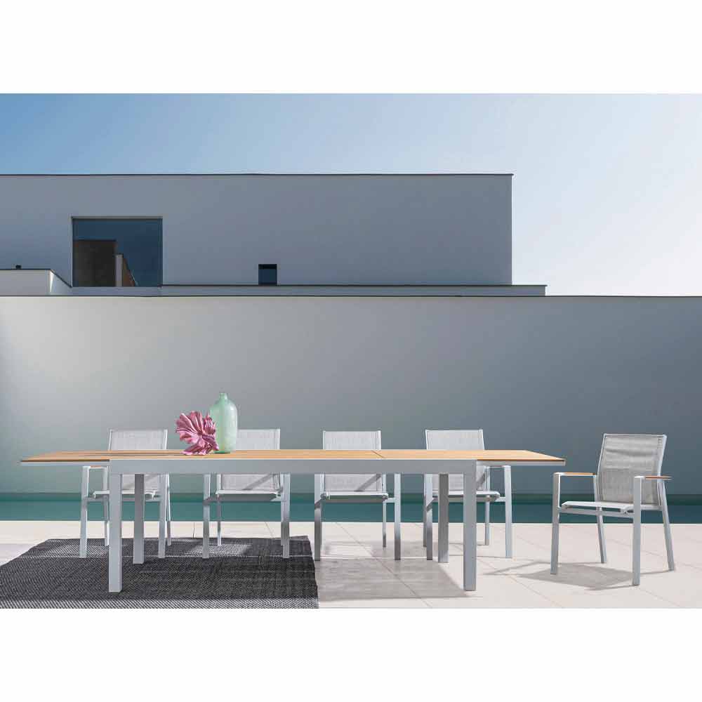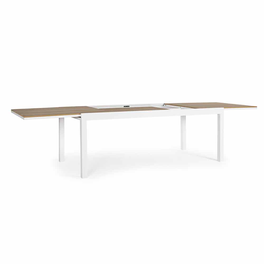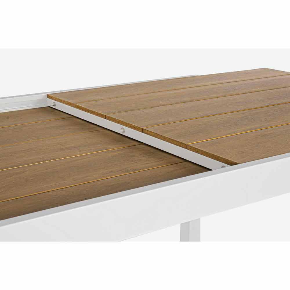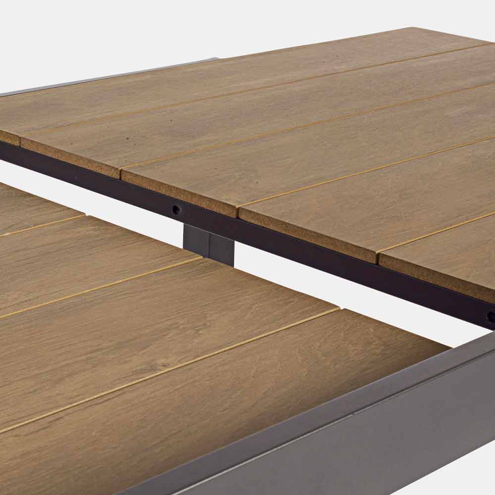 polywood (kompositmaterial med liknande utseende som trä) 90% polystyren 10% sbs teakfärg. Infällbar förlängning. Galvaniserade stålskruvar.