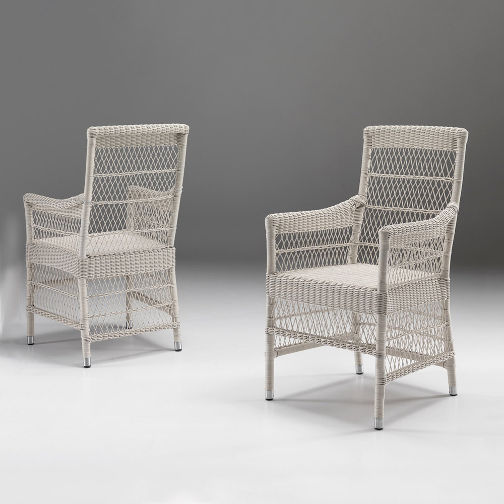Den vävda stilen är raffinerad och delikat och tillsammans med den mycket höga kvaliteten på materialen och dess avgörande former gör denna stol perfekt för interiör- och exteriörinredning, både för privata och kontraktsmiljöer som terrasser, verandor, trädgårdar men de hittar också en perfekt plats vid poolen.