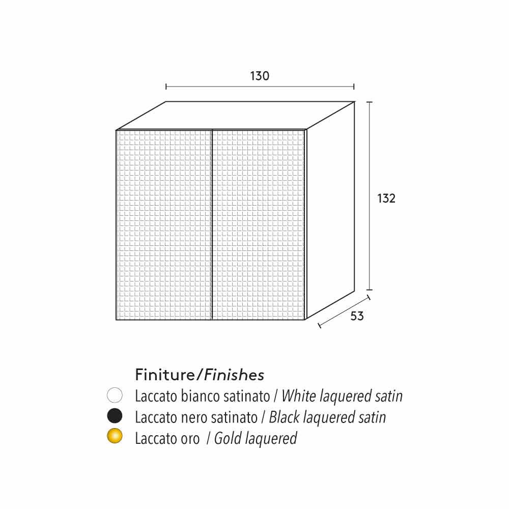 Samtida skänk 2 dörrar med öppning på sidorna och topp i målat glas. inomhus glashylla. Satin finish. Finns i antingen vitlackerad satin, lackerad satin svartlackerad eller guld.