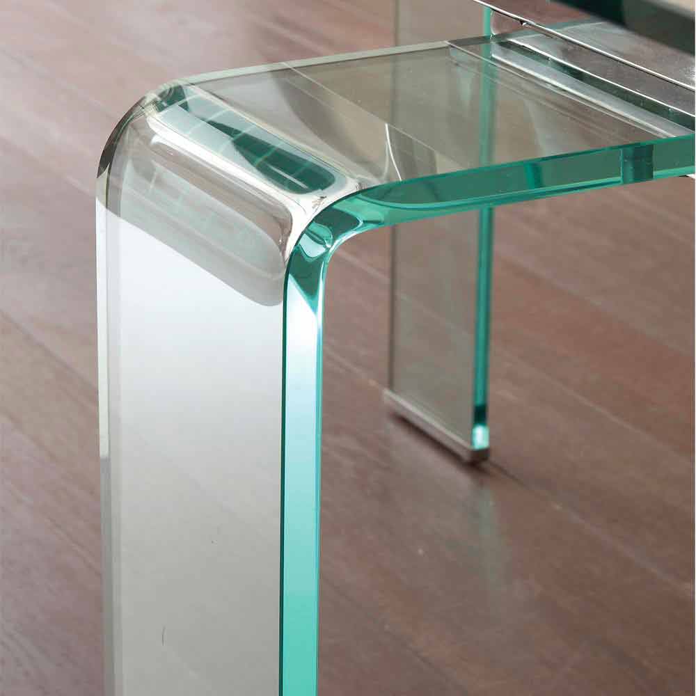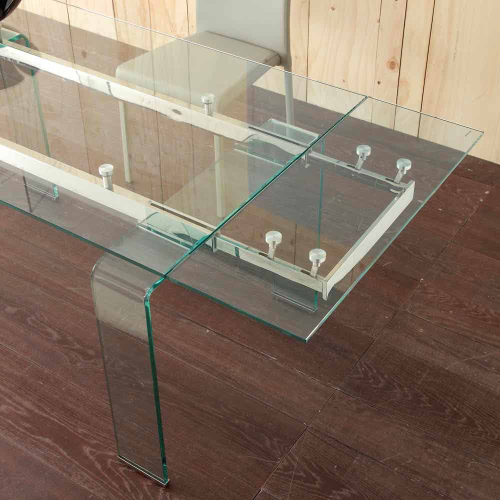 Herren av bordsskivan är tillverkad av transparent härdat glas (9 mm tjockt golv, ben 14 mm), är strukturen gjord av kromad metall.