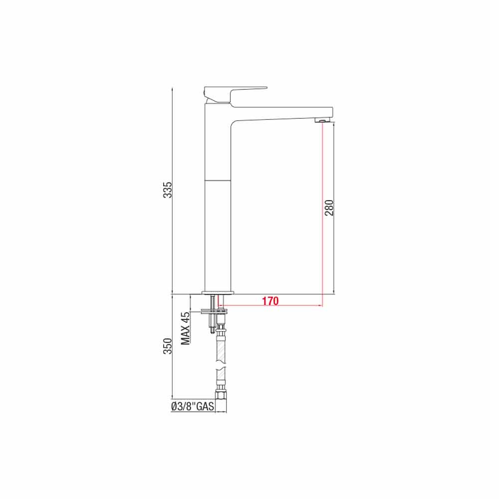 Modern design mässing förlängd tvättställsblandare Tillverkad i Italien.